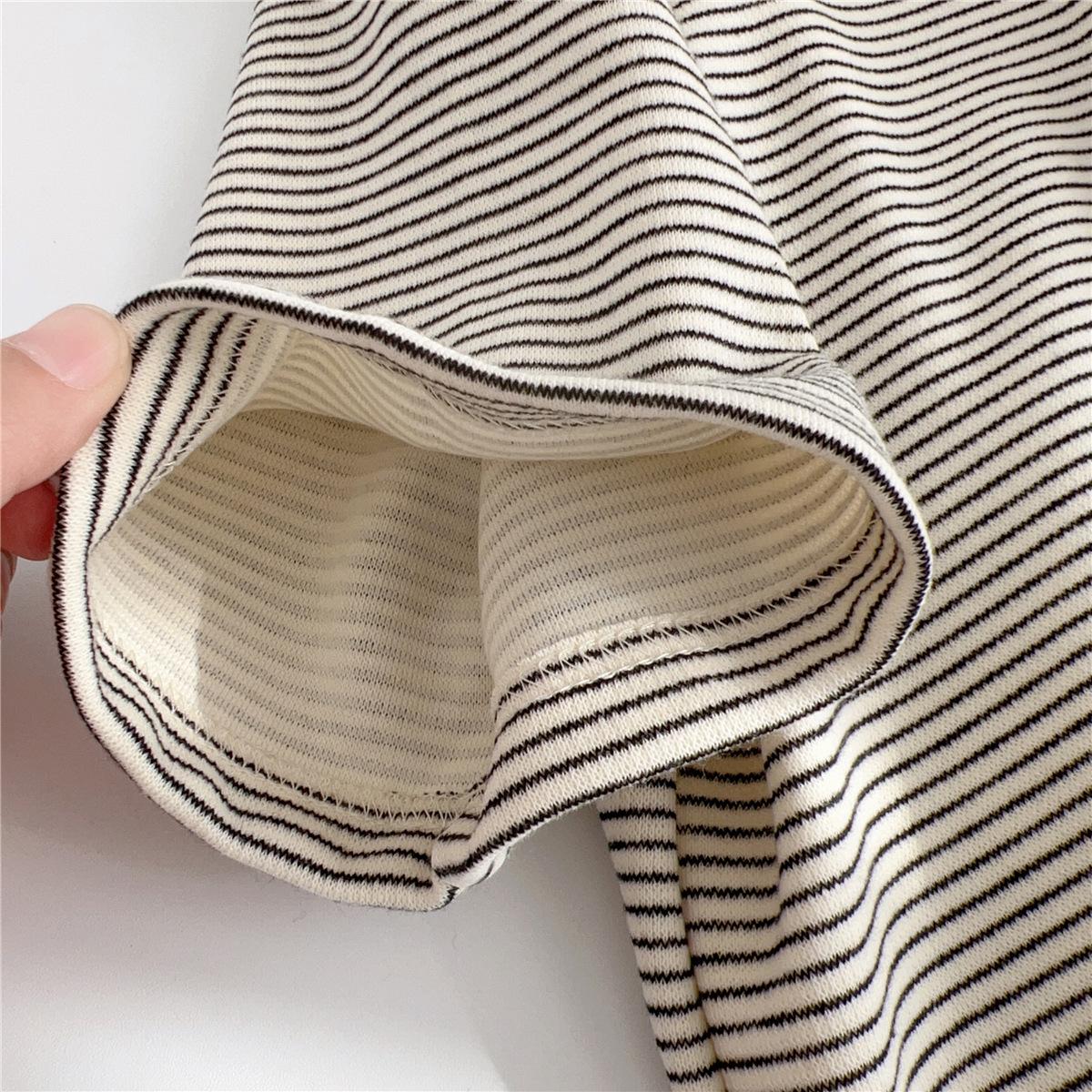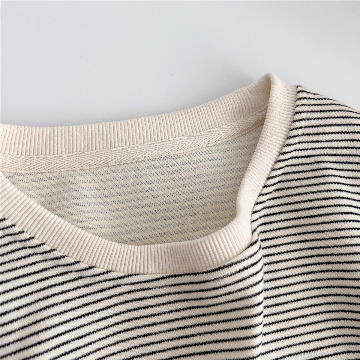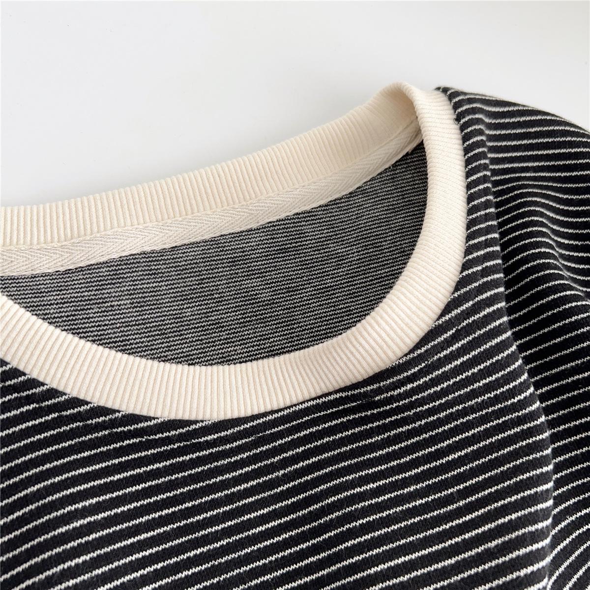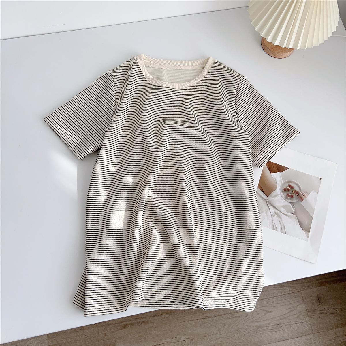 2024 Primavera Nova Camiseta Feminina Simples de Gola Redonda Listrada Ombro Regular Solta Emagrecimento Versátil Manga Curta Tendência Feminina