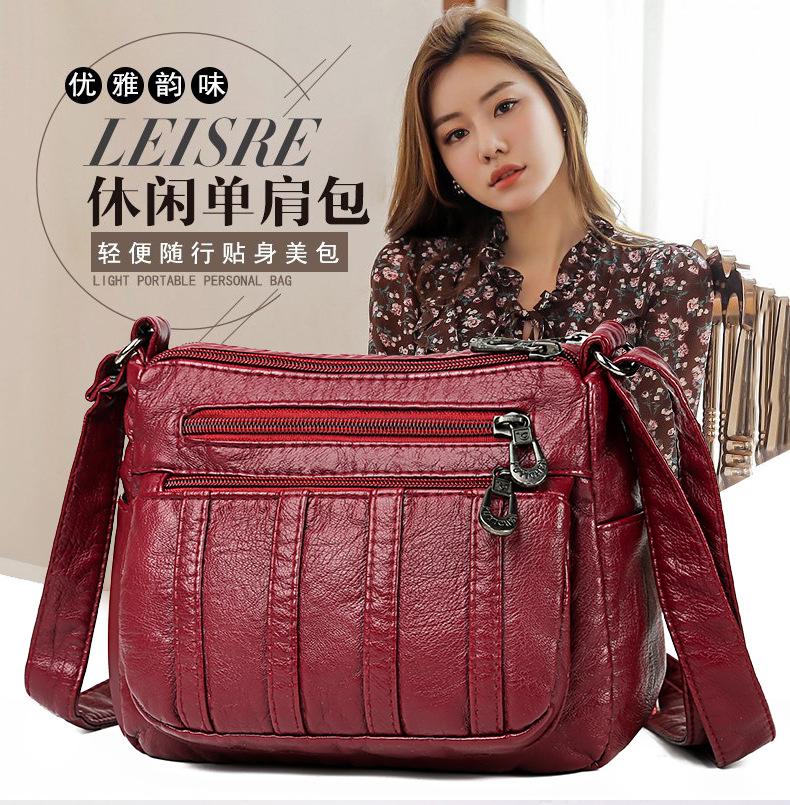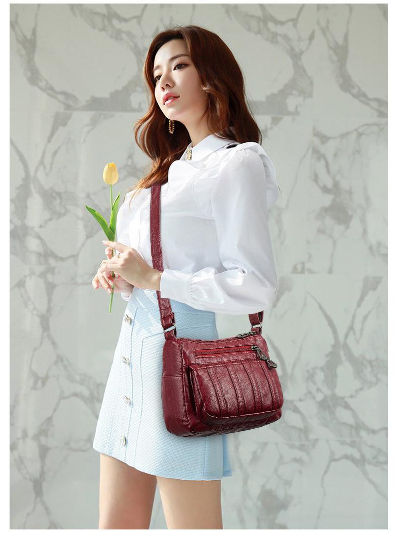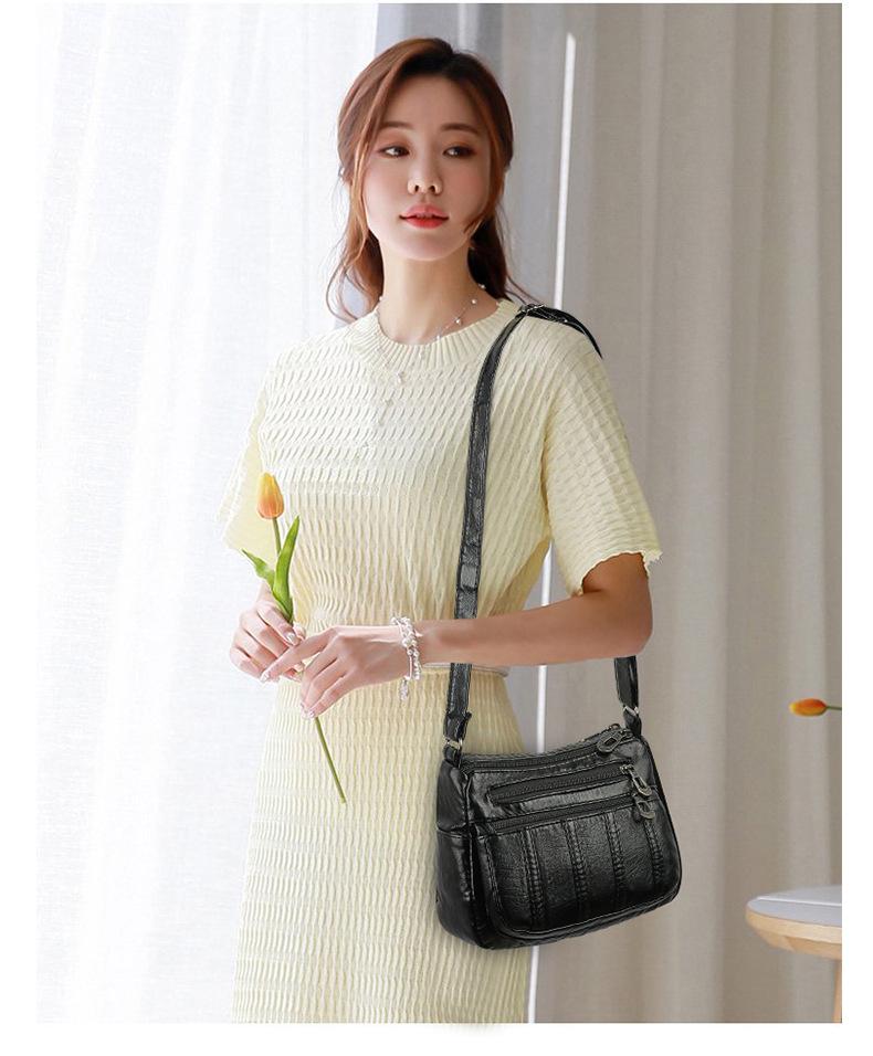 Bolsa Feminina de Meia-Idade Nova 2024, Bolsa de Mãe Elegante e Moderna, Bolsa Transversal de Ombro de Couro Macio Multicamadas, Bolsa de Sogra Atacado
