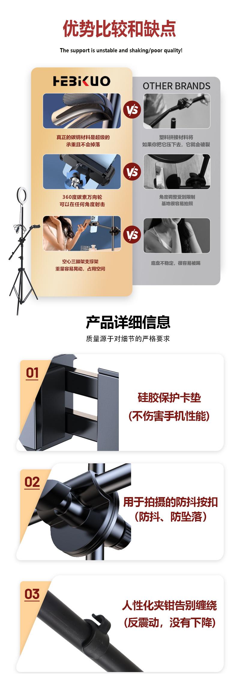 Suporte de microfone do telefone móvel suporte ao vivo com tripé de luz selfie universal pouso preguiçoso conveniente stand