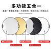 Nota: O refletor 5 em 1 não é composto por cinco painéis, mas sim por um painel de luz suave e uma jaqueta dupla-face conversível, que é fixada com zíper. Ao alterar a superfície reflexiva da jaqueta, você pode usar a superfície refletora com 5 funções conforme necessário.