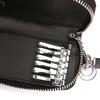 Capa de couro genuíno para chaves de carro, chaveiro de couro de vaca masculino e feminino, grande capacidade, zíper, porta-cartões