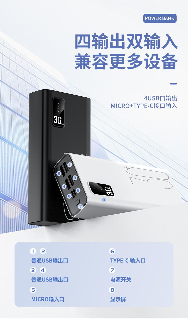 Cross-border hot 60000 mA grande capacidade de carregamento tesouro portátil rápido carregamento digital display ao ar livre energia móvel atacado