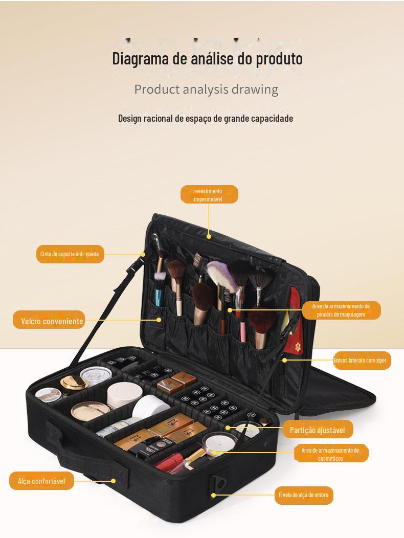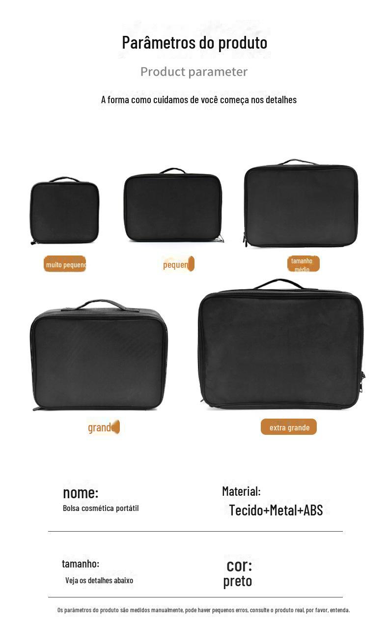 Bolsa Cosmética Preta de Grande Capacidade Extra Grande Pequena Mochila Bolsa de Cosméticos Viagem Conveniente Bolsa de Cosméticos