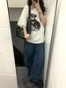 2025 Verão Nova Moda Elegante Estampada Gola Redonda Manga Curta Camiseta para Mulheres Solta Manga Média Blusa Básica
