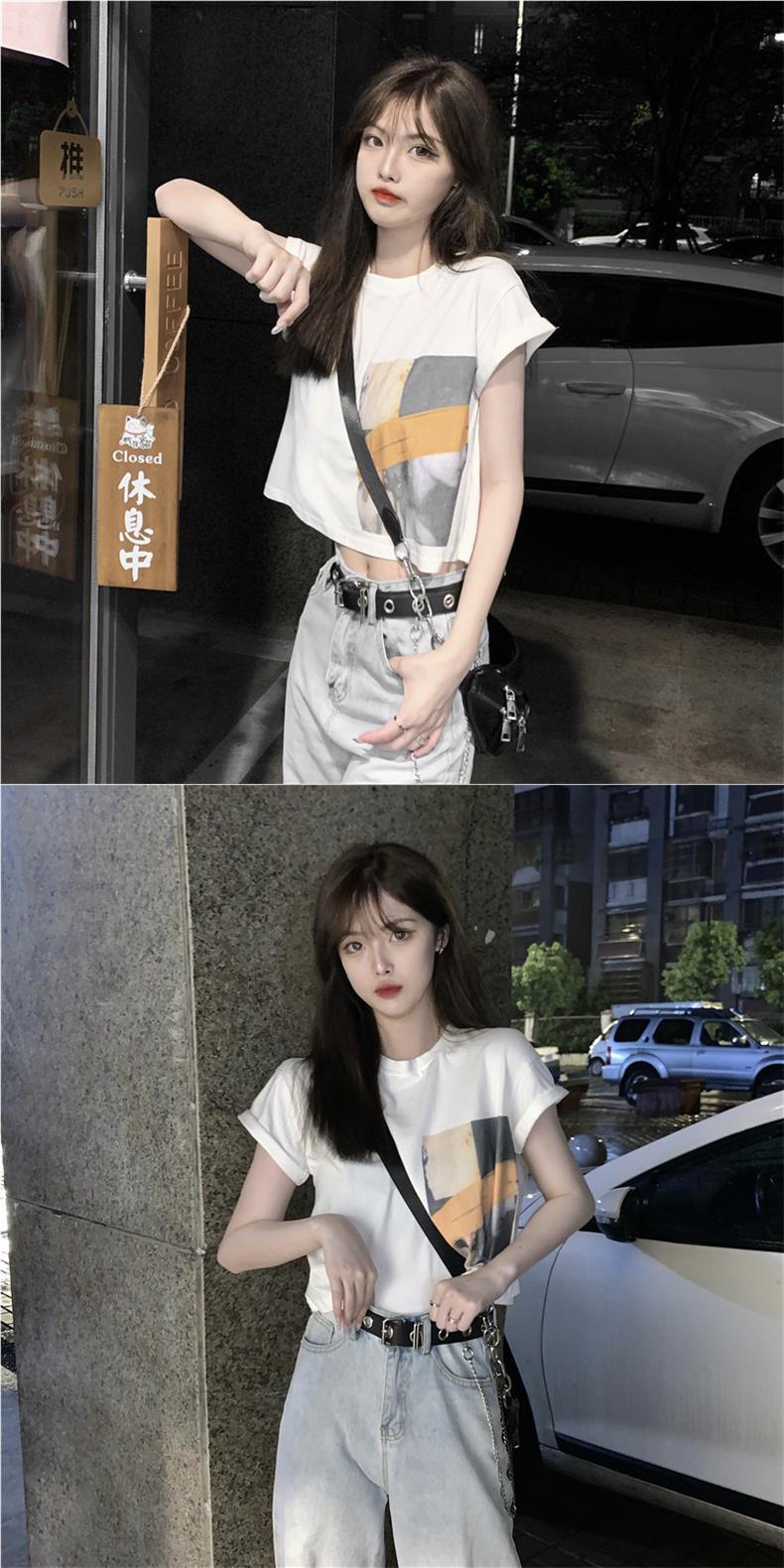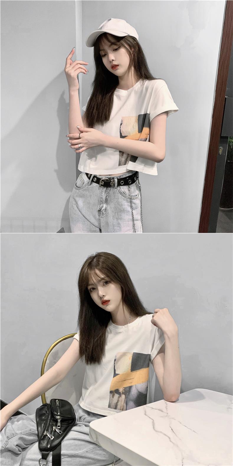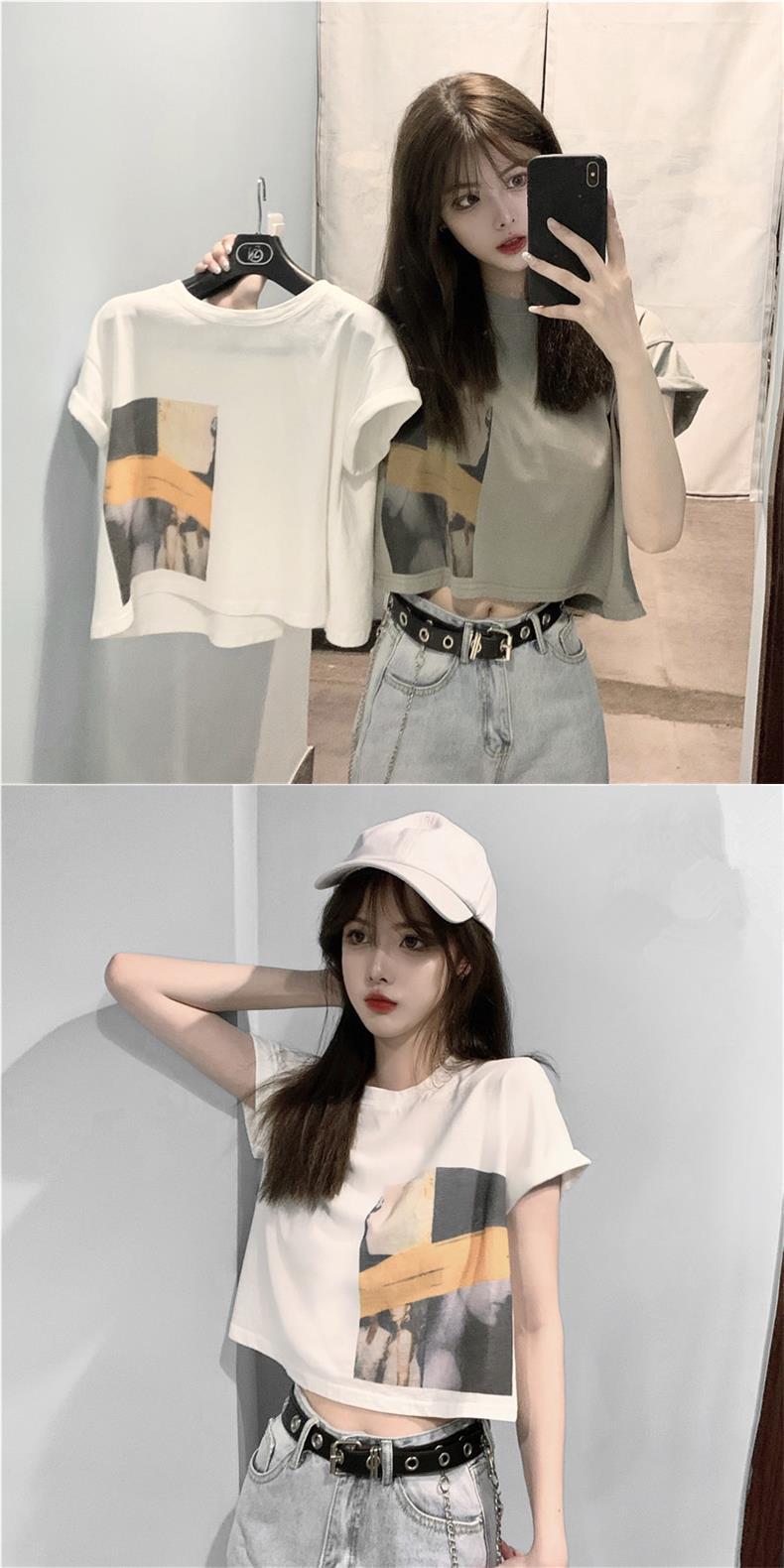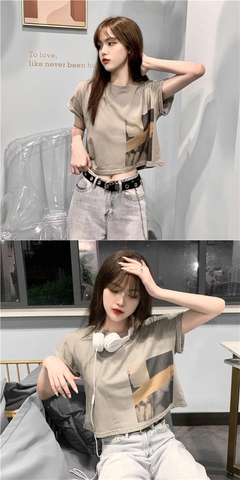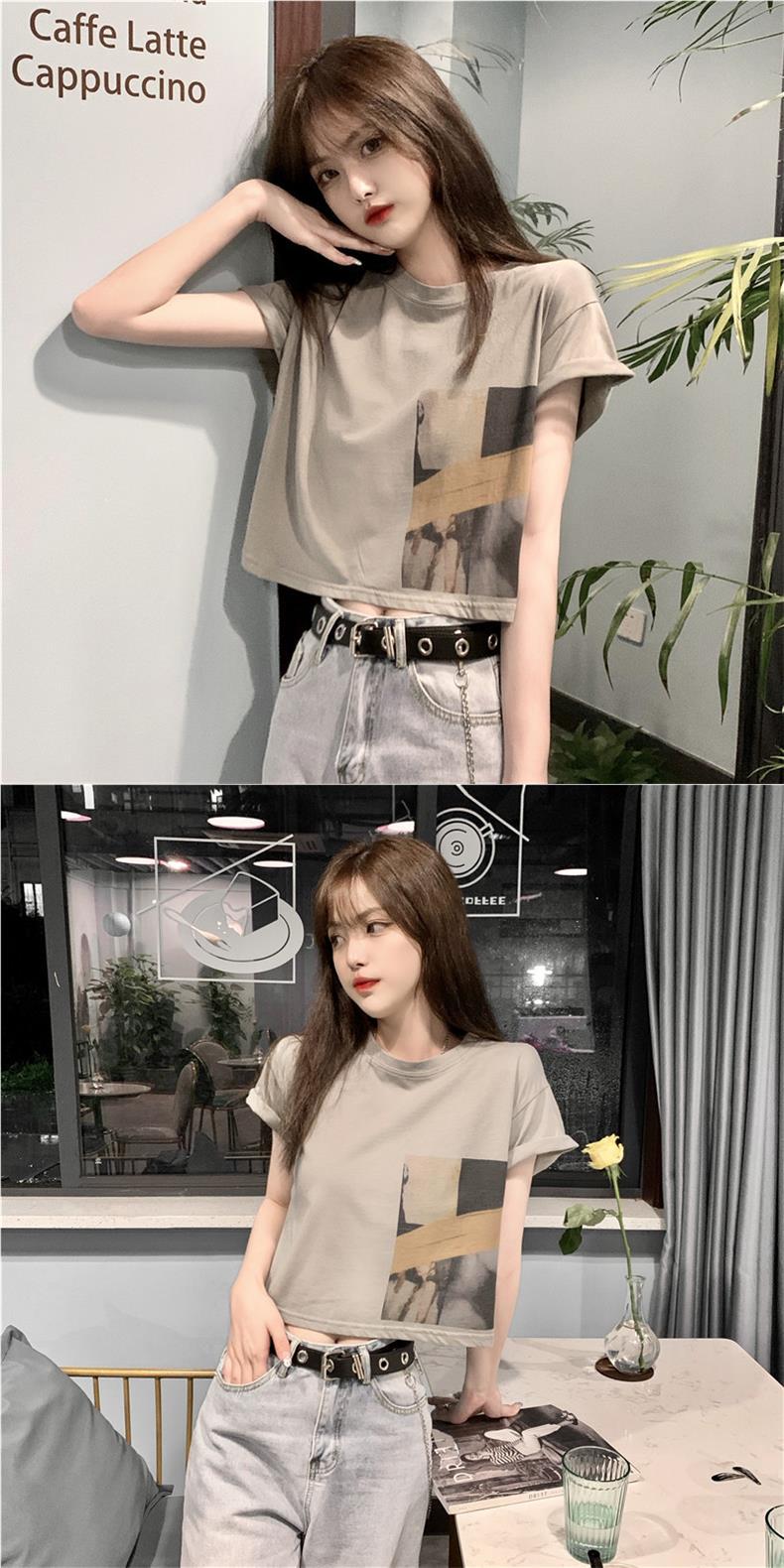 Compre Camiseta feminina de manga curta da Internet Trendy, estilo coreano, solta, verão 2025, nova chegada, Misty Navel Ins Trendy no atacado no Joom.pro