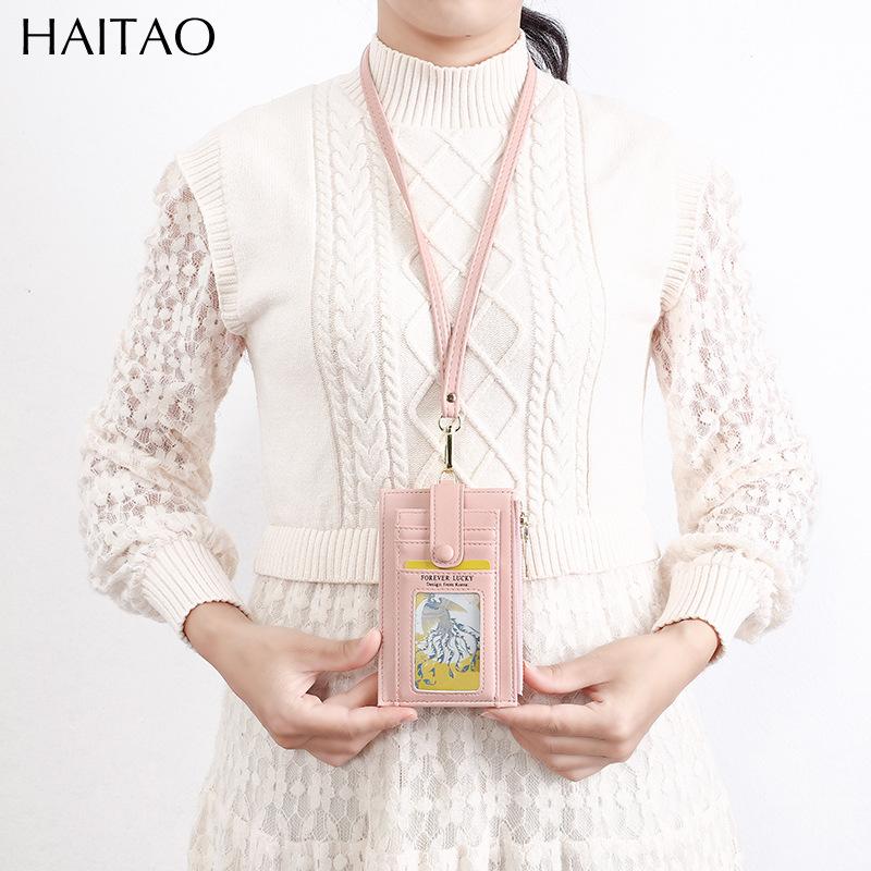 Porta-Cartões, Estojo para Cartões, Porta-Moedas Pendurado no Pescoço de Cor Sólida, Compartimentos para Cartões de Grande Capacidade, Porta-Cartões de Acesso Feminino Simples e Elegante de Alta Qualidade Atacado