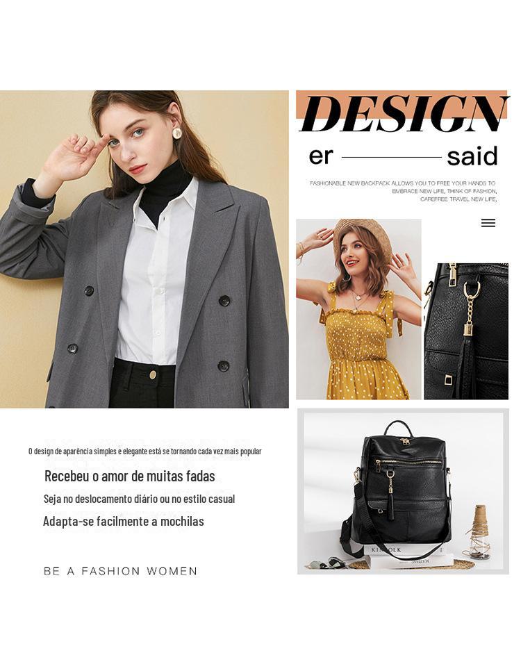 Mochila Feminina 2023 Cross-border Nova Grande Capacidade PU Couro macio Mochila de Grande Capacidade Mochila Moda Casual Bolsa de Múmia de Viagem