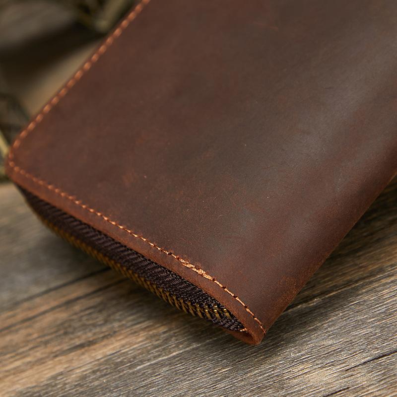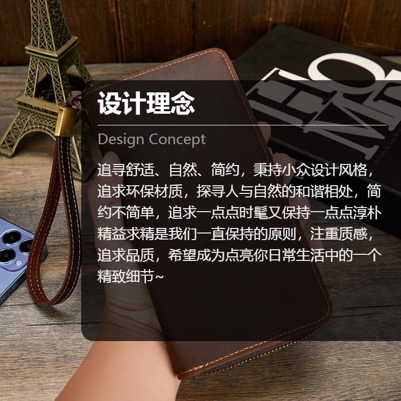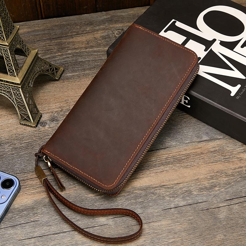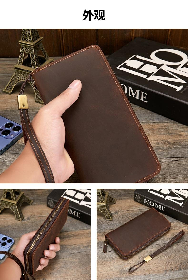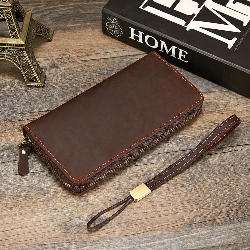 Compre Carteira masculina de couro Crazy Horse Couro genuíno Trendy Vintage Long Wallet RFID Anti-Magnético Carteira de couro Clutch masculina no atacado no Joom.pro