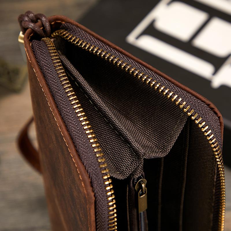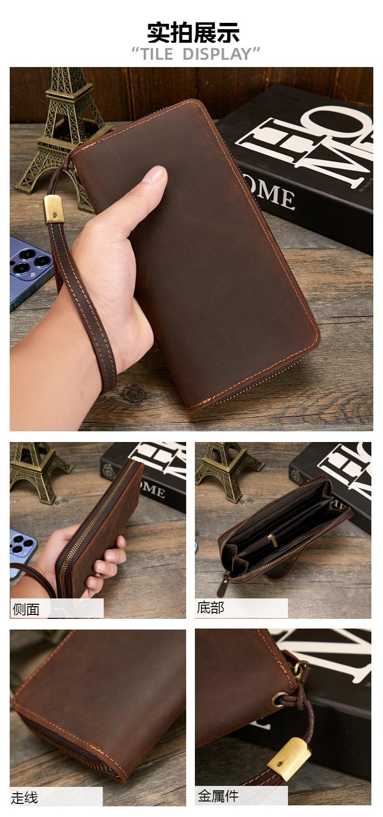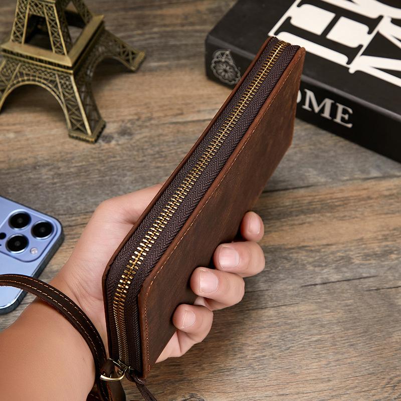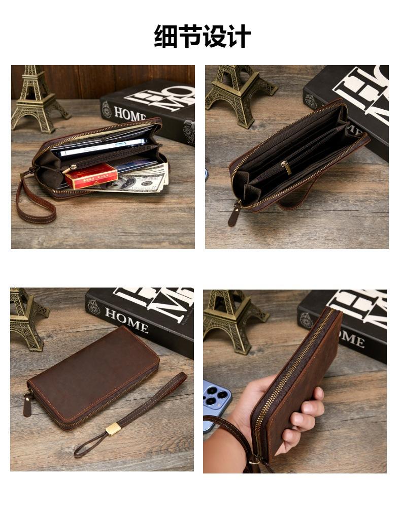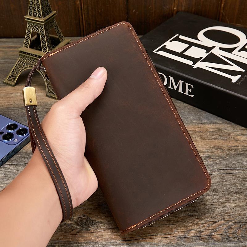 Compre Carteira masculina de couro Crazy Horse Couro genuíno Trendy Vintage Long Wallet RFID Anti-Magnético Carteira de couro Clutch masculina no atacado no Joom.pro