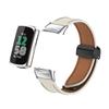 Características do produto: Design de fivela magnética dobrável, fácil de usar, material de couro, sem atrito na pele.