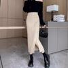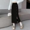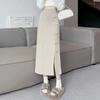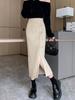 Saia Tricotada para Mulheres Primavera, Outono e Inverno 2025 Nova Pequena Cintura Alta Linha A Cobre o Quadril Fenda Saia Midi