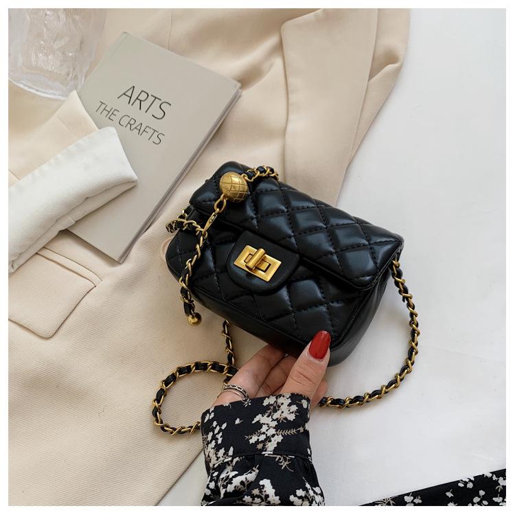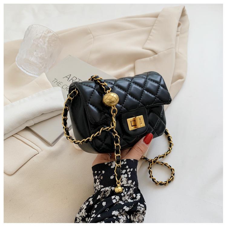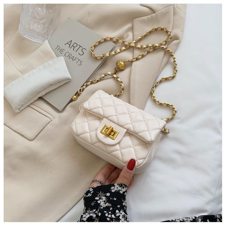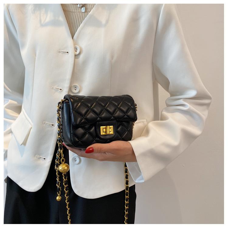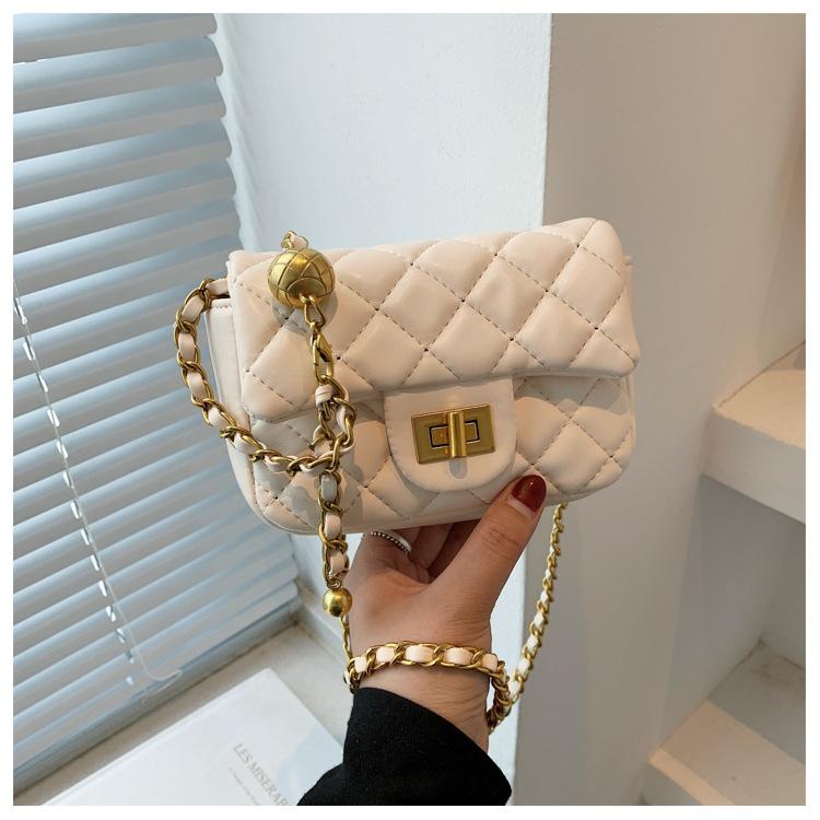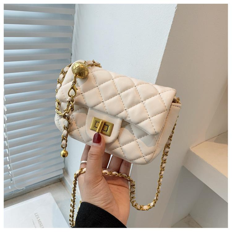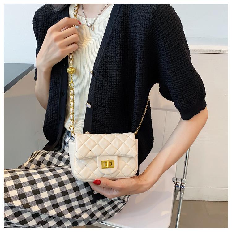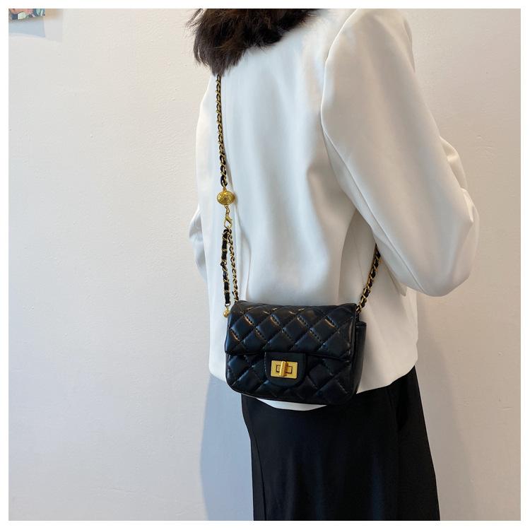 Bolsa pequena de linha de bordado rômbico para mulheres 2024 Novo estilo ocidental moderno bolsa de mensageiro de corrente combinando bolsa de ombro pequena quadrada da moda