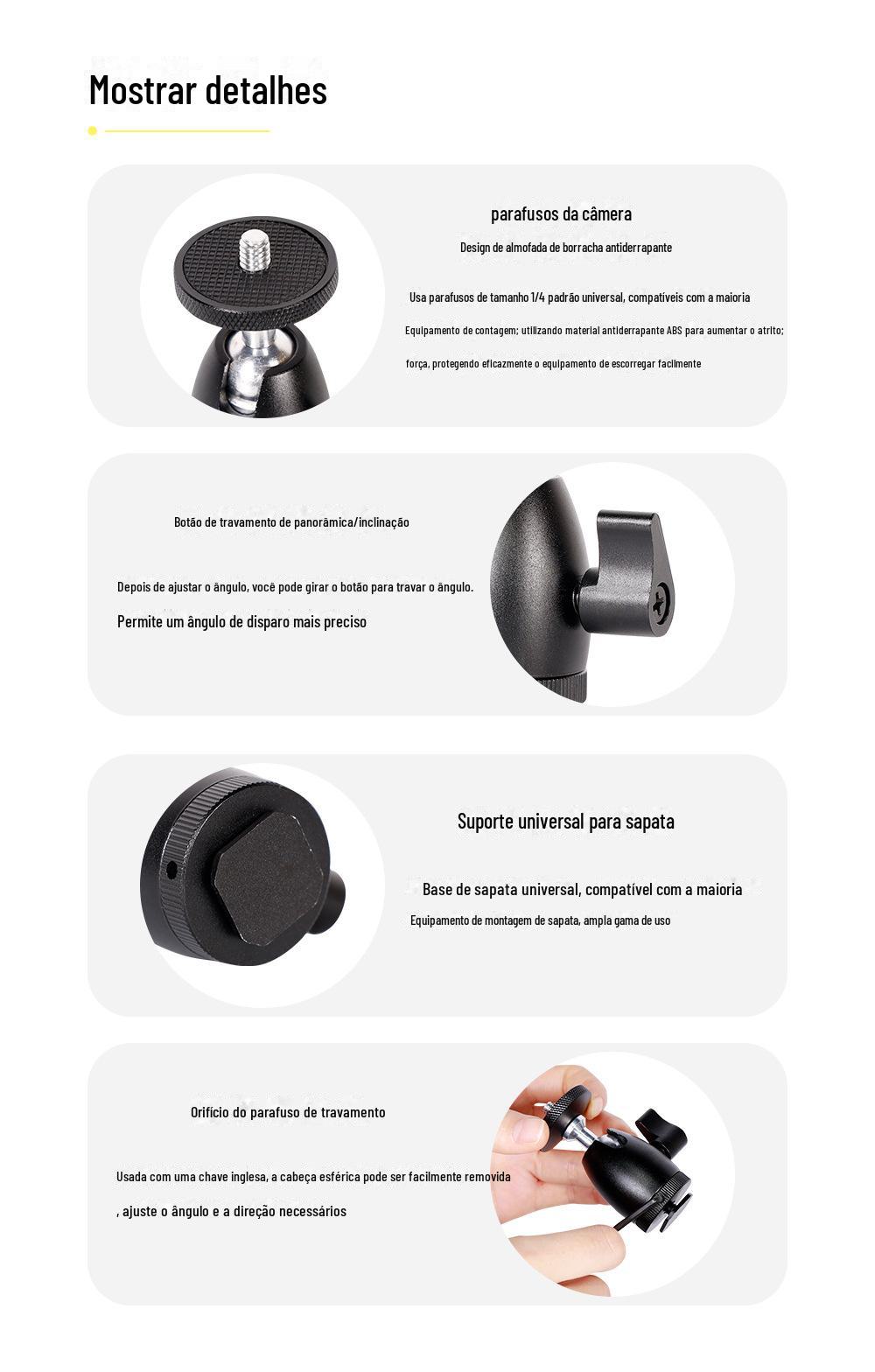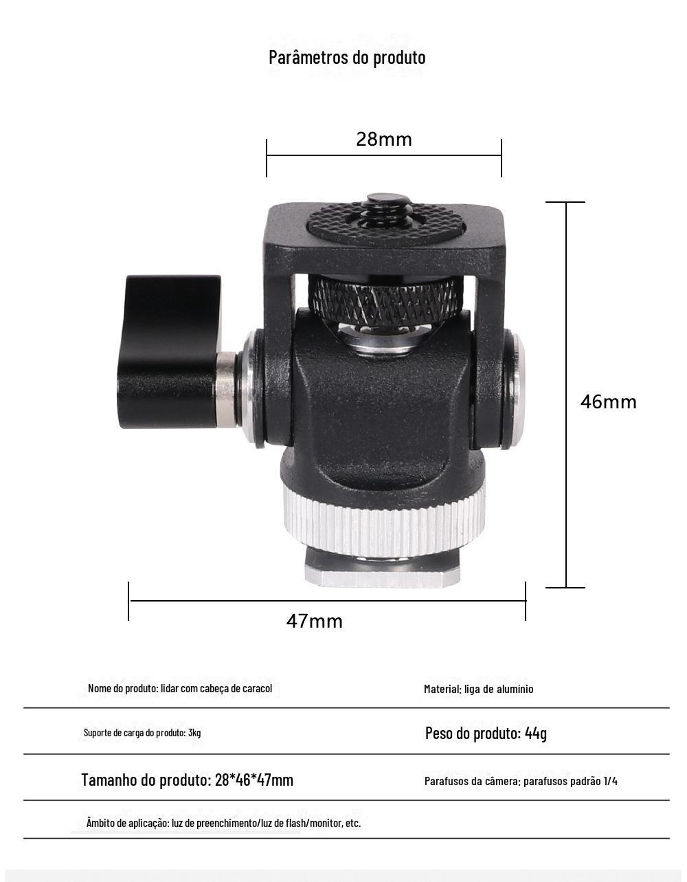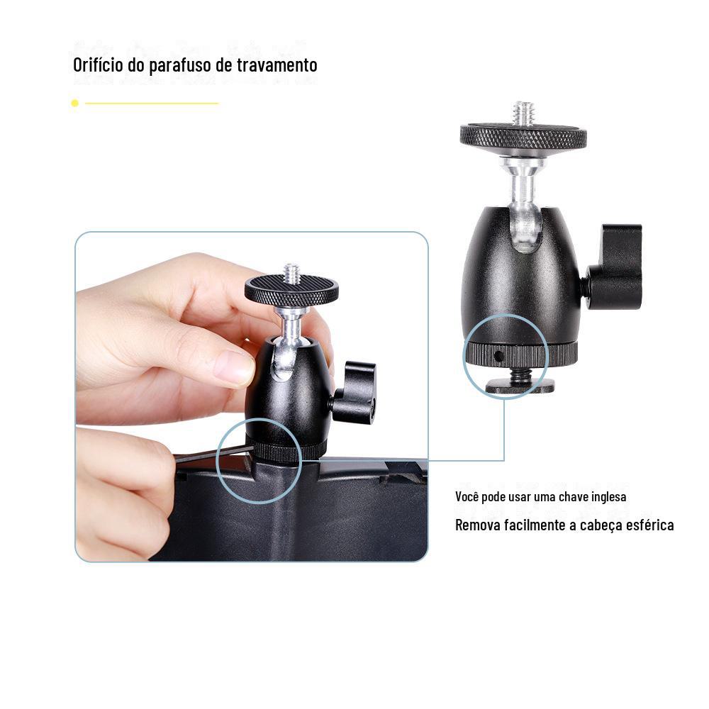 Monitor universal câmera esférica pan-tilt projetor bola de metal cabeça suporte fotografia luz de preenchimento sapata pequena pan-tilt
