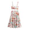 2026 Verão Roupa Feminina Transfronteiriça Novo Estilo Europeu e Americano Estampado Vestido Longo de Alças para Férias Vestido Elegante Sexy para Mulheres
