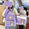 Bolsa escolar feminina estudante do ensino médio mochila leve estudante da escola primária mochila de grande capacidade mochila de cinco peças conjunto atacado