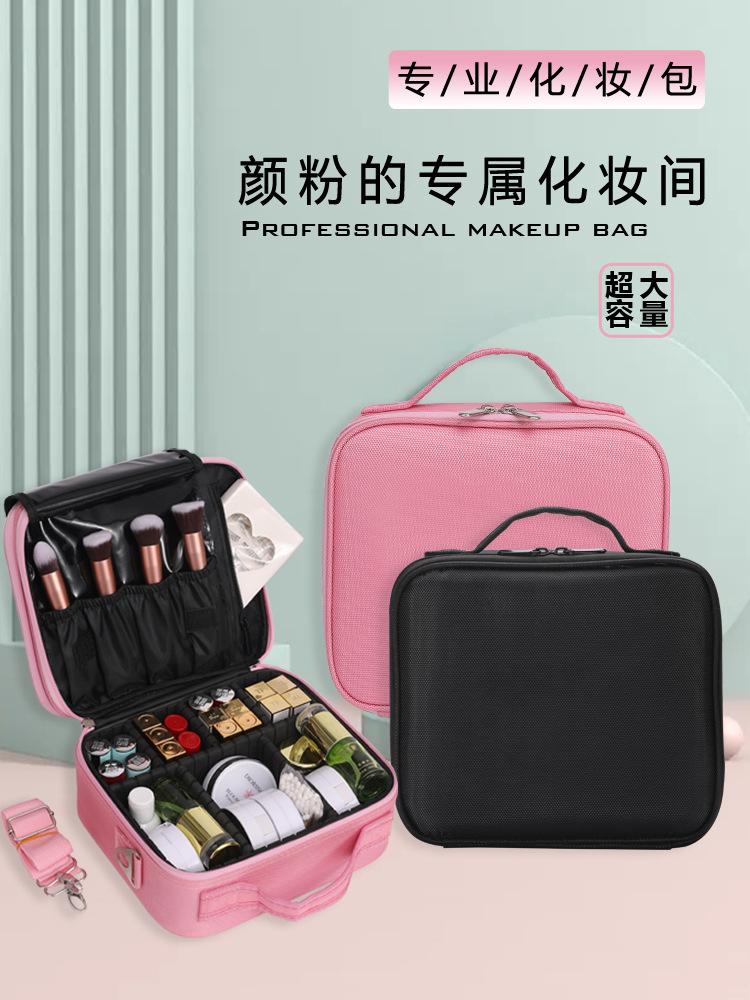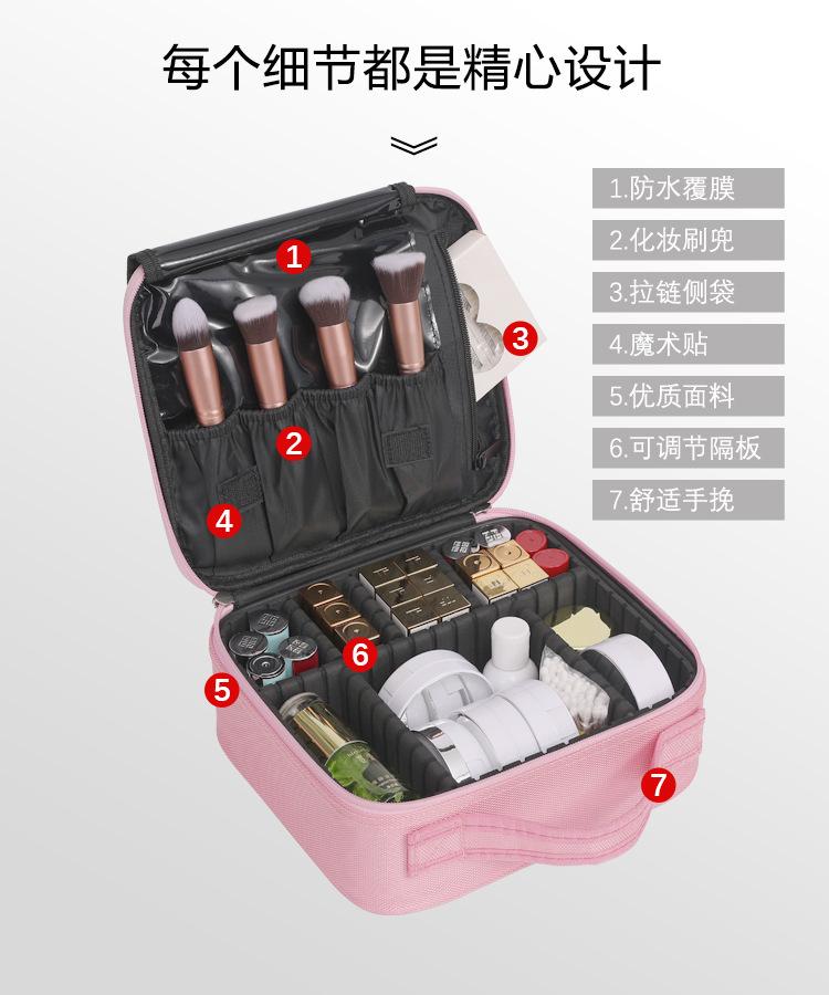 Bolsa Cosmética Portátil, Bolsa de Armazenamento de Cosméticos Portátil de Grande Capacidade, Bolsa de Maquiagem de Tecido Oxford Rosa, Bolsa Cosmética Impermeável