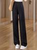 2023 Verão Nova Calça Semi-elástica Cintura Alta Emagrecedor Calças Casuais Calças Algodão e Linho Perna Larga Calças