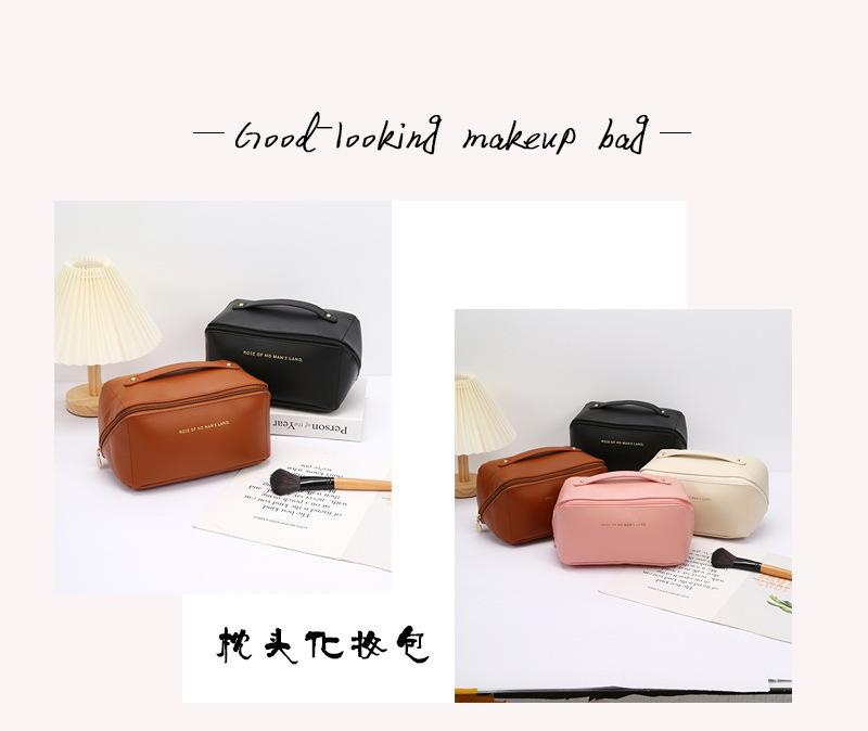 Nova bolsa de armazenamento de cosméticos de couro pu, grande capacidade, travesseiro, bolsa de cosméticos, viagem, bolsa de lavagem feminina portátil