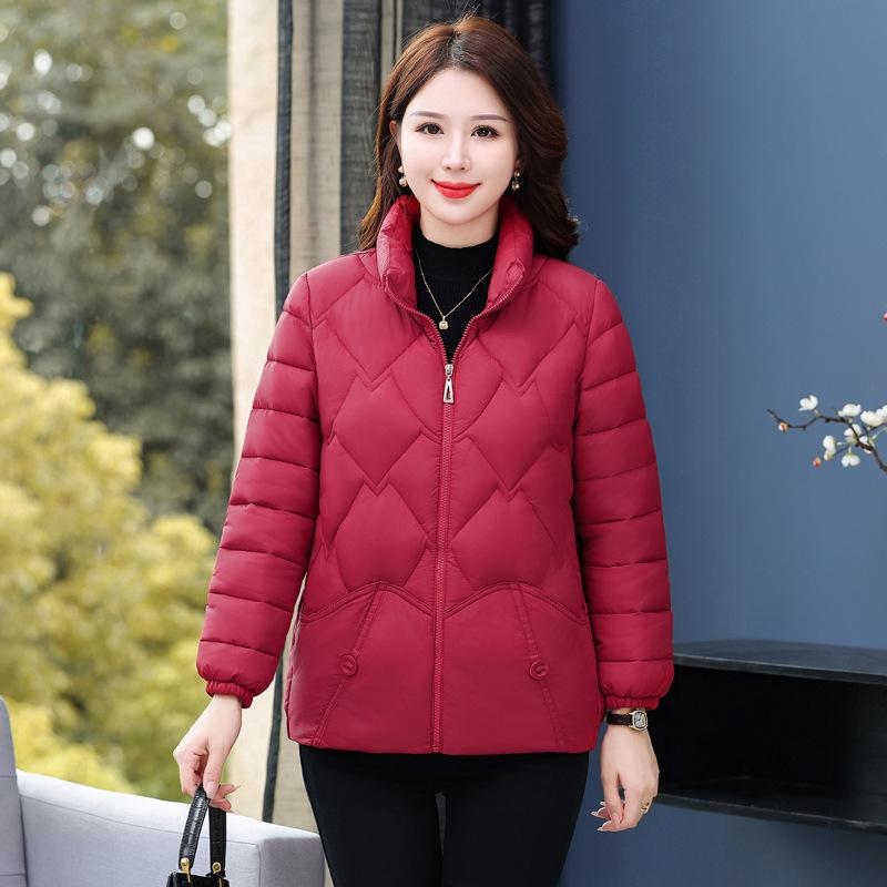 Casaco acolchoado de algodão de meia-idade e idosos Casaco acolchoado de algodão curto das mulheres plus size outono e inverno Novo casaco temperamento quente jaqueta acolchoada de algodão gola alta casaco acolchoado de algodão