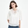 Camisa de Algodão Puro Estilo Japonês com Renda Vazada, Camisa Doce Redutora de Idade Solta de Manga Curta, Nova Blusa Interior de Renda