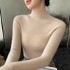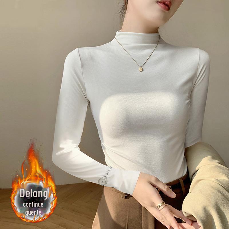 Camisa de fundo de gola alta outono e inverno Novo emagrecimento uso interno de veludo quente manga comprida T-shirt feminina cor sólida all-matching top