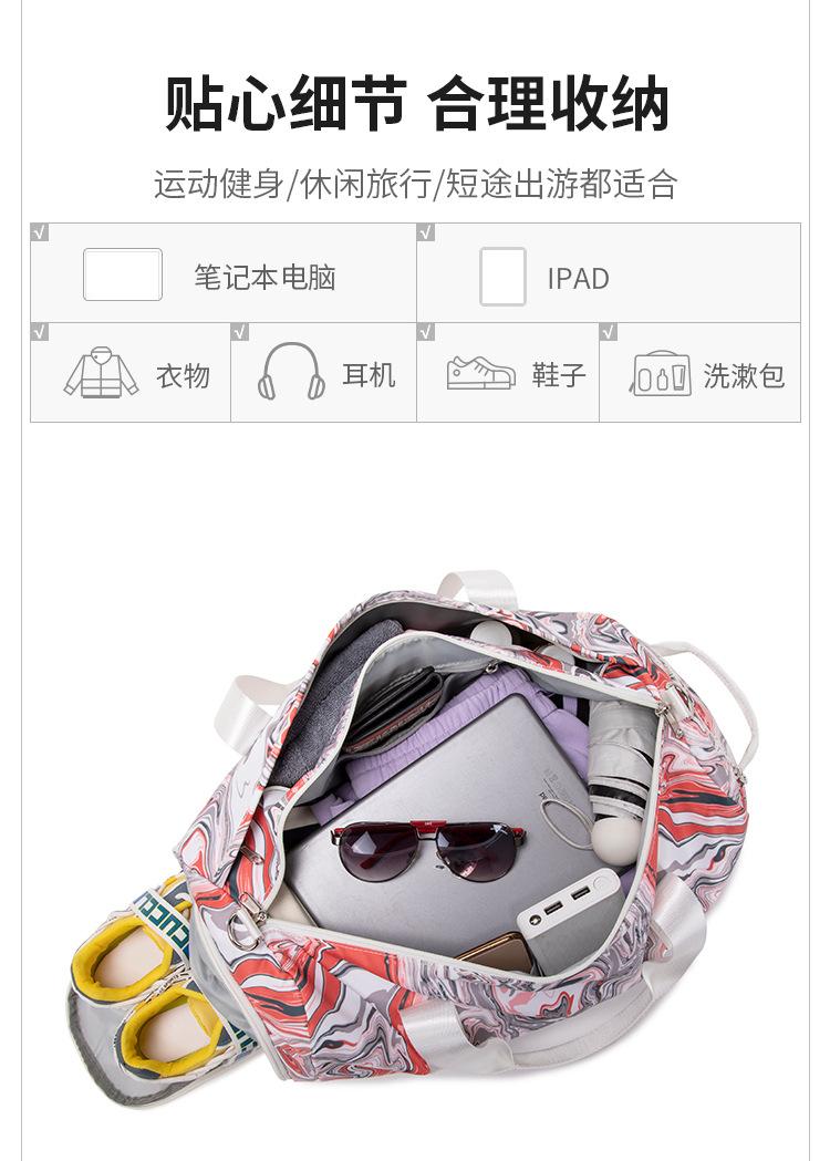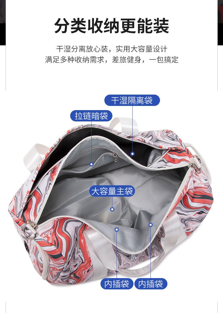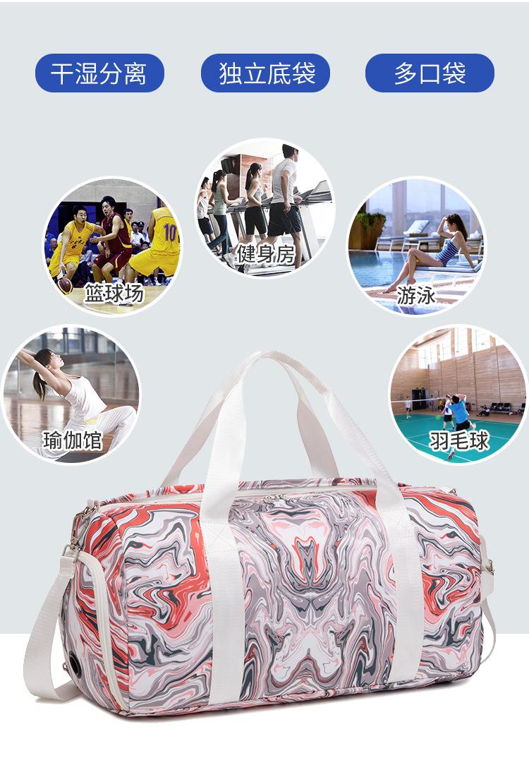 Nova bolsa de viagem de armazenamento de grande capacidade impressão transfronteiriça esportes ioga bolsa separação úmida e seca bolsa de ginástica à prova d'água