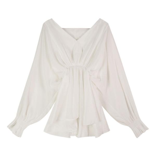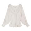 Compre 2025 Nova Camisa Casual Branca de Manga Lanterna com Decote V Estilo Coreano para Mulheres, Design de Nicho Chic no atacado no Joom.pro