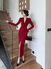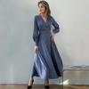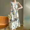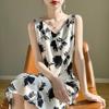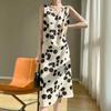Vestido Elegante Feminino Transfronteiriço Sedoso com Estampa Francesa, Alças Largas e Decote V Pulôver com Saia Longa Interna