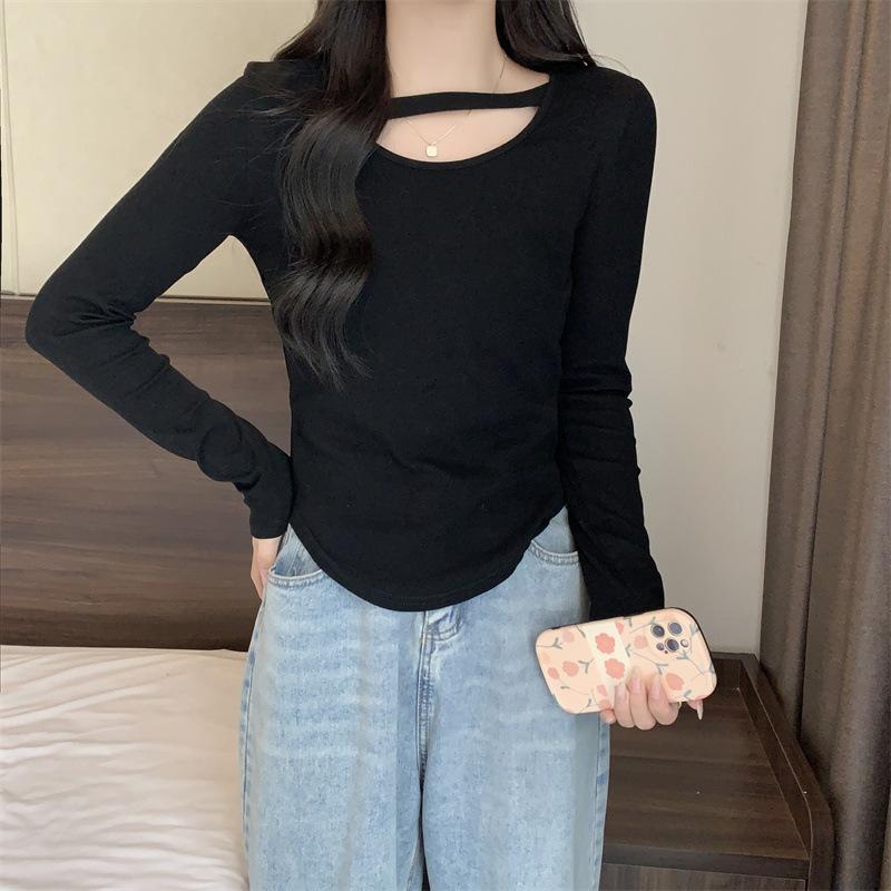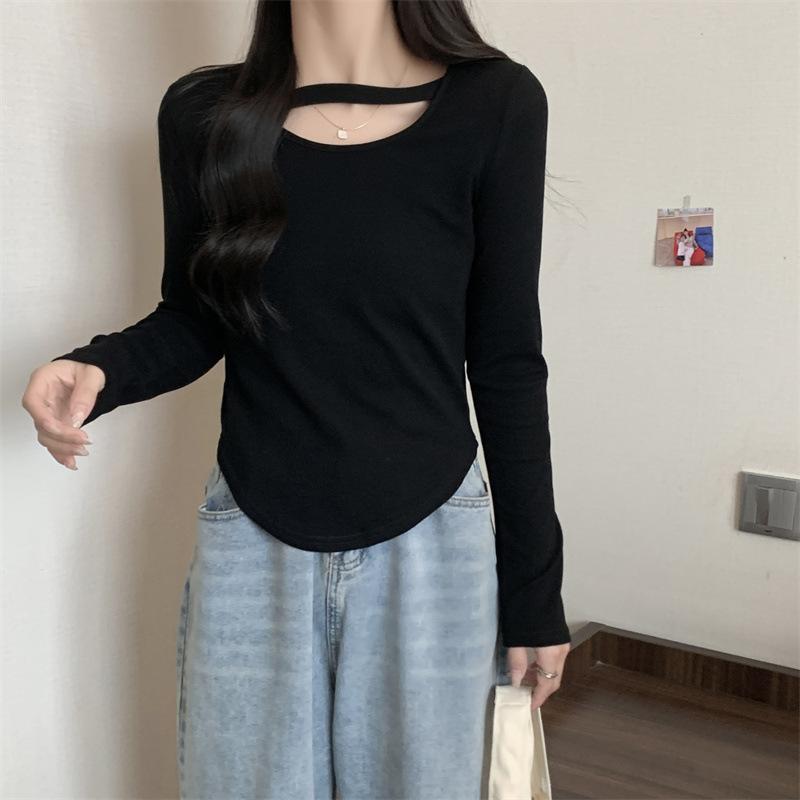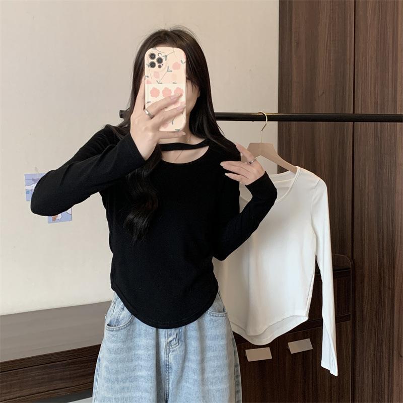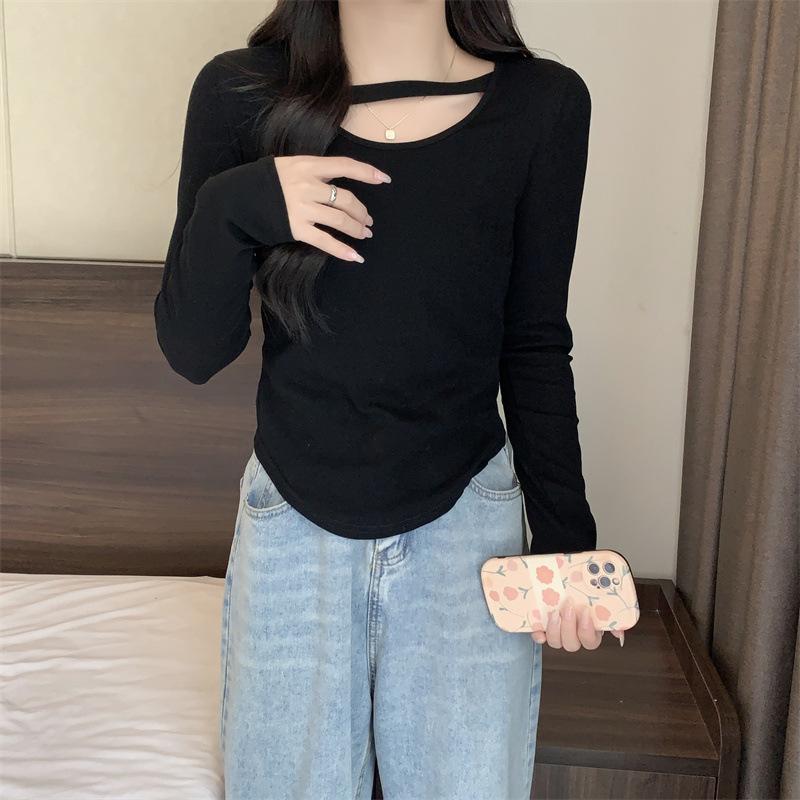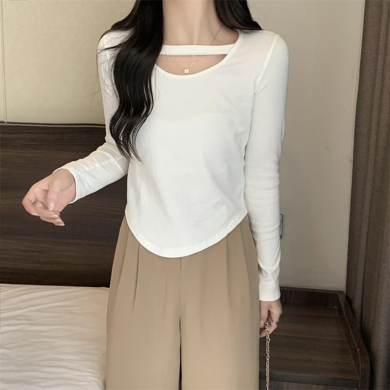 Compre 2025 Outono Novo Estilo Coreano Cor Sólida Top Estudante Ajustado Sexy Camiseta Básica Curta Manga Longa para Mulheres Tendência Ins no atacado no Joom.pro