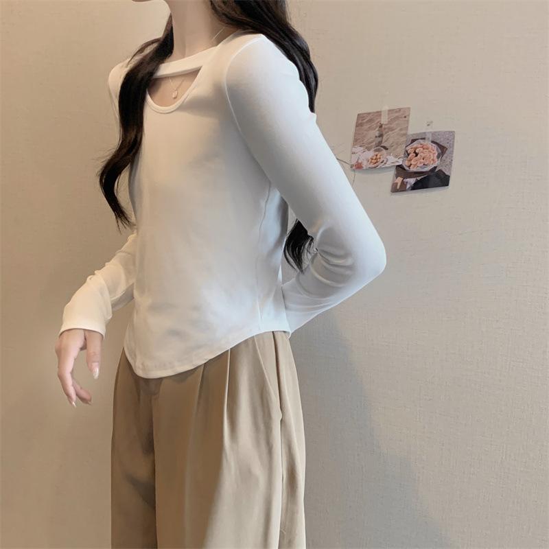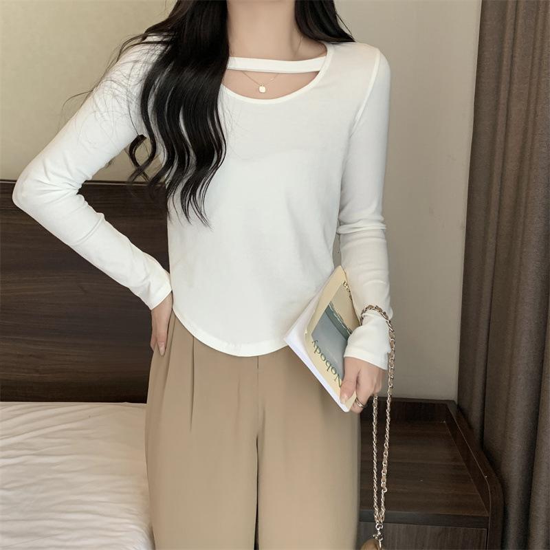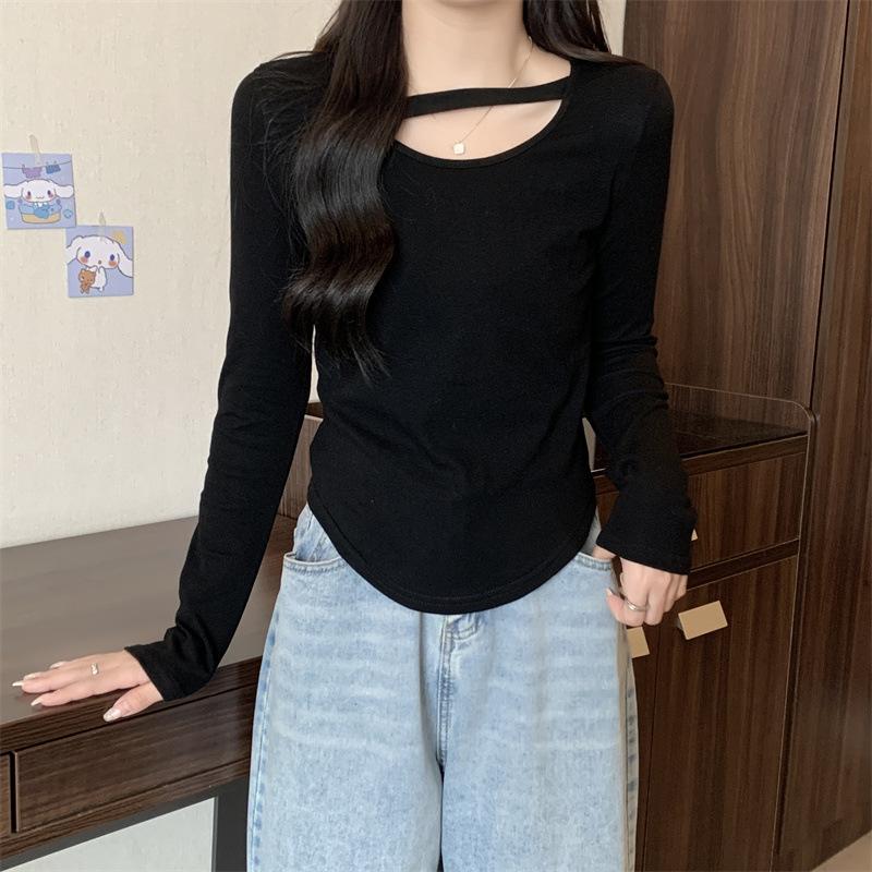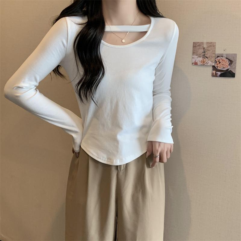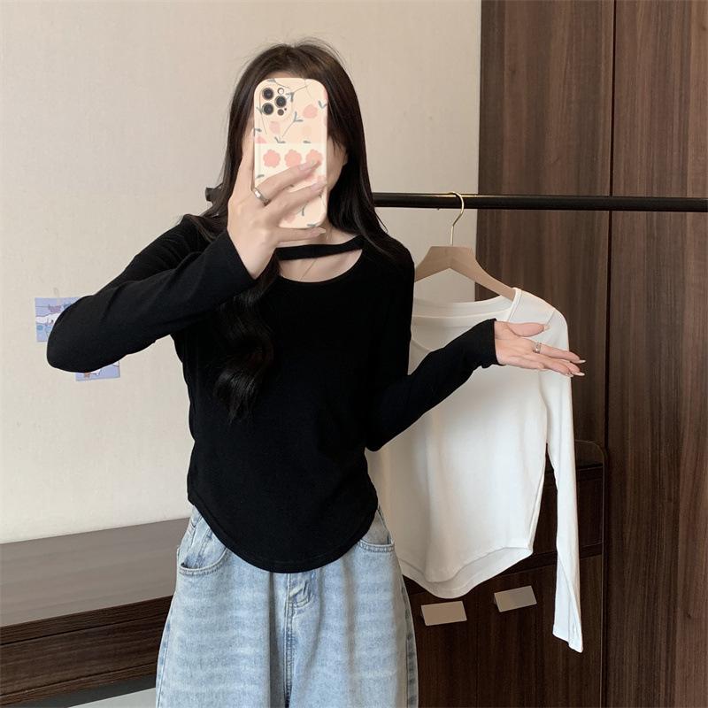 Compre 2025 Outono Novo Estilo Coreano Cor Sólida Top Estudante Ajustado Sexy Camiseta Básica Curta Manga Longa para Mulheres Tendência Ins no atacado no Joom.pro