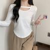 2025 Outono Novo Estilo Coreano Cor Sólida Top Estudante Ajustado Sexy Camiseta Básica Curta Manga Longa para Mulheres Tendência Ins