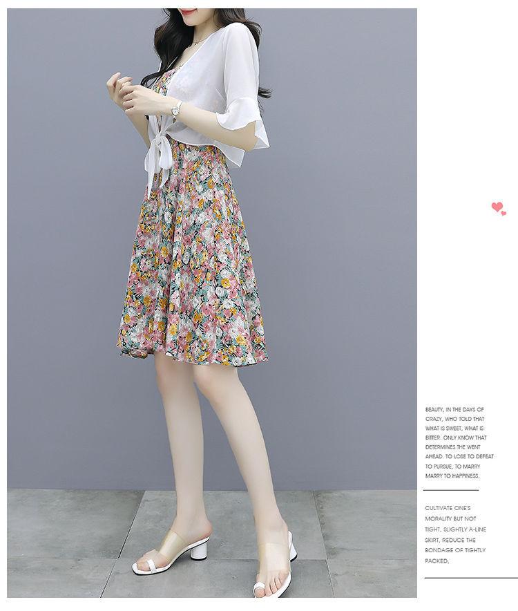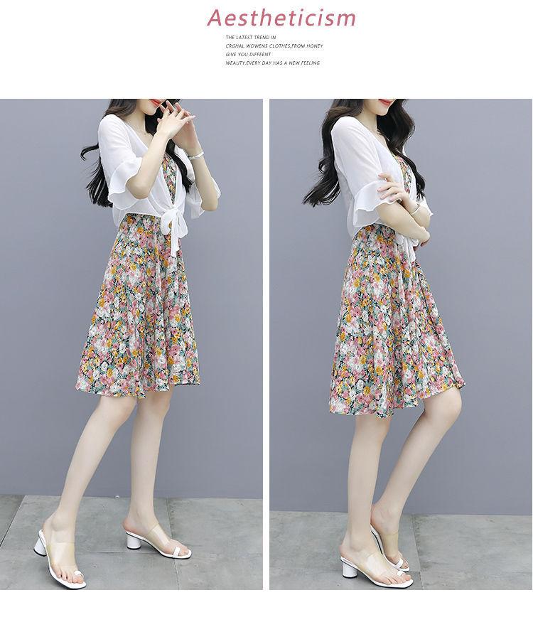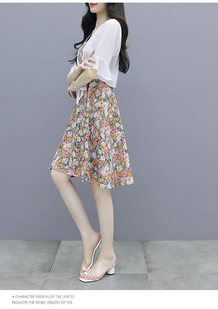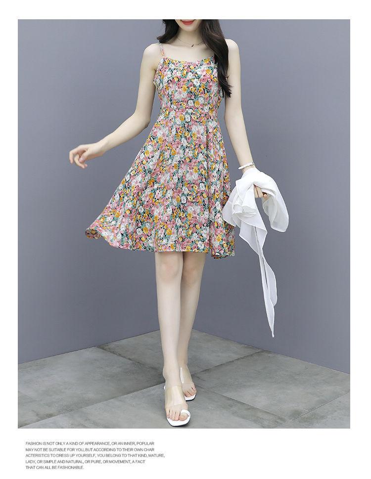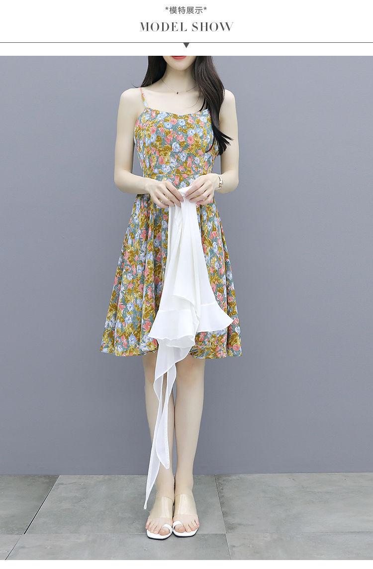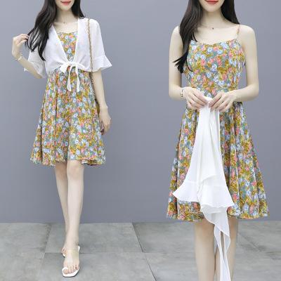 Verão 2020 Novo estilo coreano de duas peças estilo francês elegante cintura apertada emagrecimento vestido floral feminino vestido de alça sexy