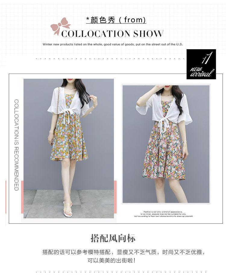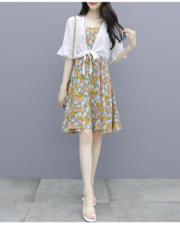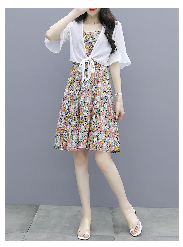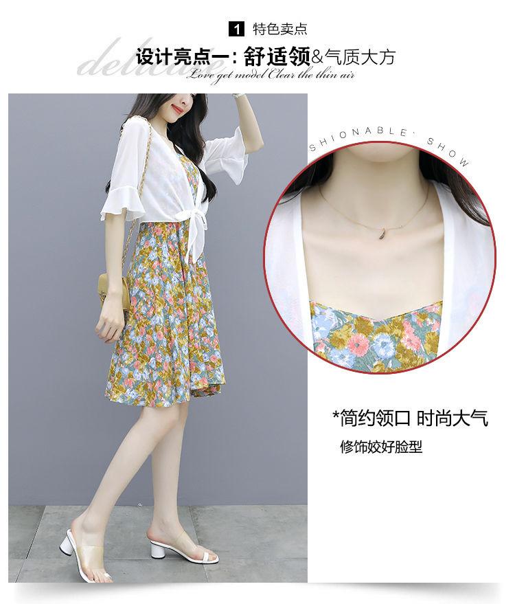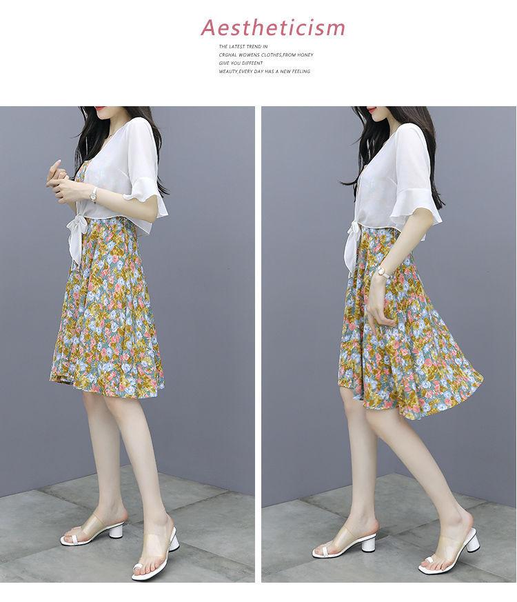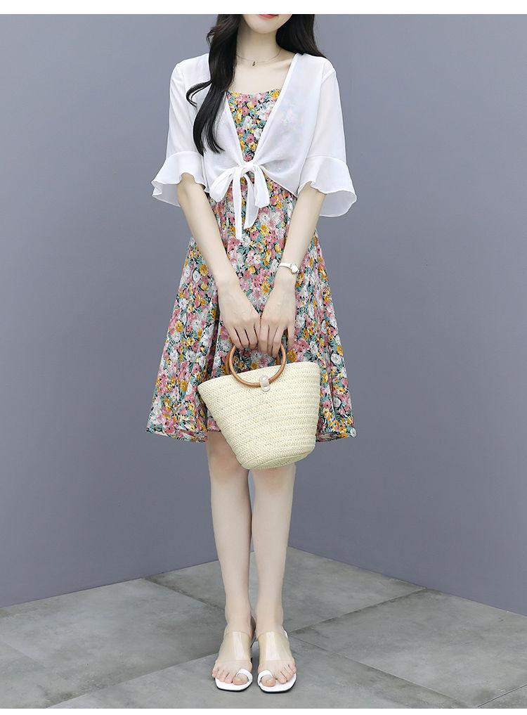 Verão 2020 Novo estilo coreano de duas peças estilo francês elegante cintura apertada emagrecimento vestido floral feminino vestido de alça sexy