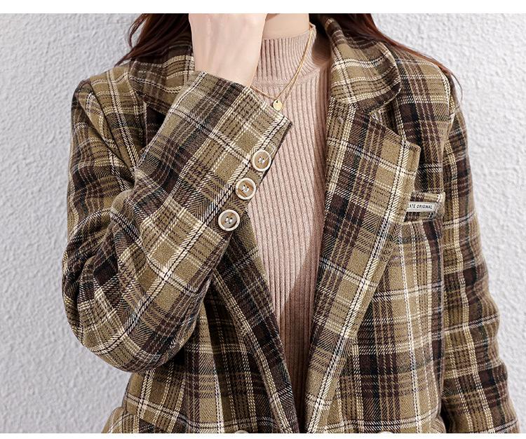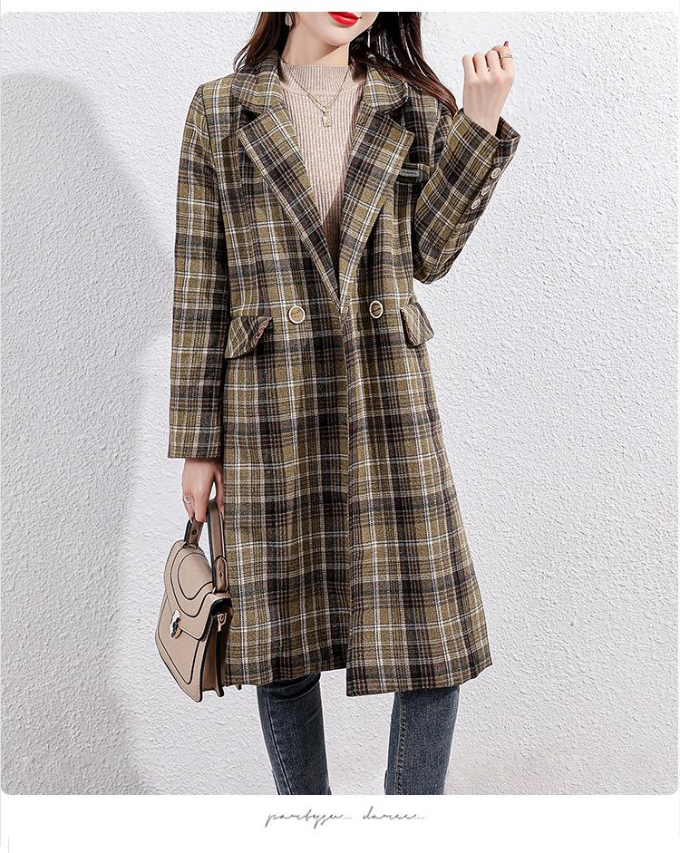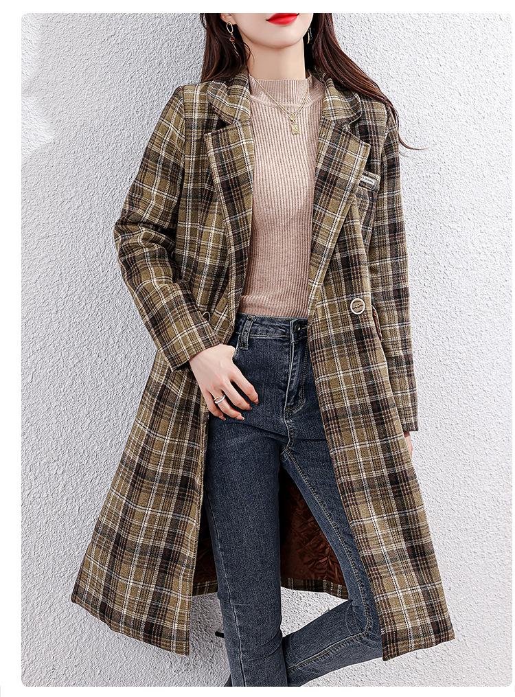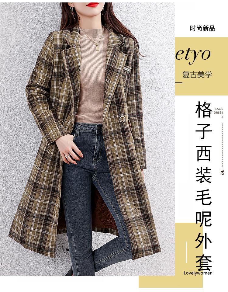 Compre Casaco xadrez de lã estilo britânico Feminino Comprimento médio 2023 outono e inverno Novo casaco engrossado de temperamento fino no atacado no Joom.pro