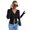 Compre Primavera/Verão 2026 Estilo Europeu e Americano Transfronteiriço Elegante para o Trabalho Pulôver Slim Fit de Manga Comprida Cropped com Fenda para Mulheres no atacado no Joom.pro