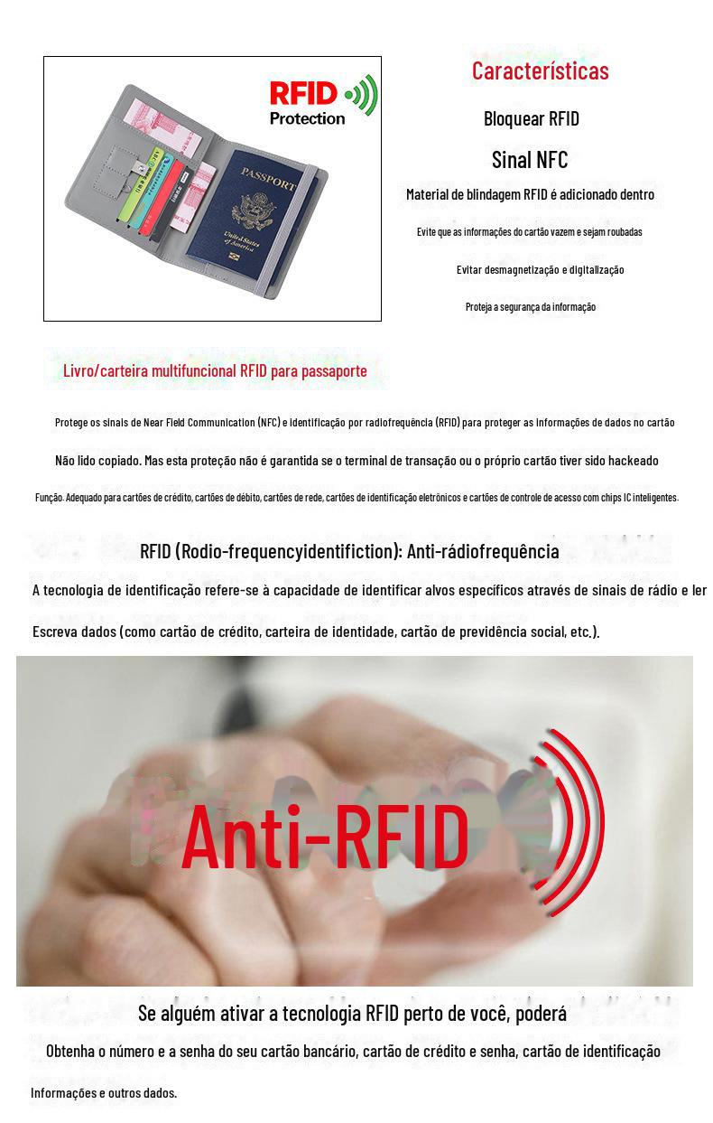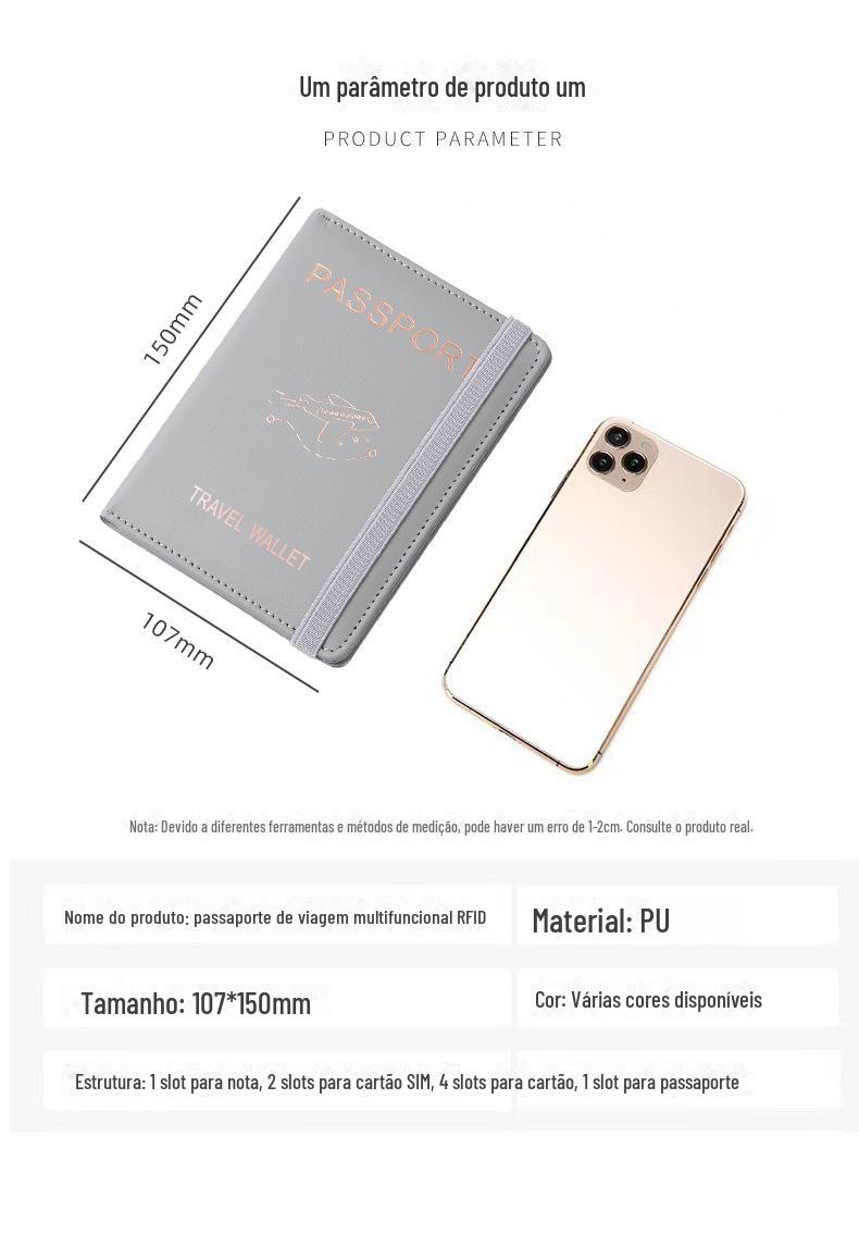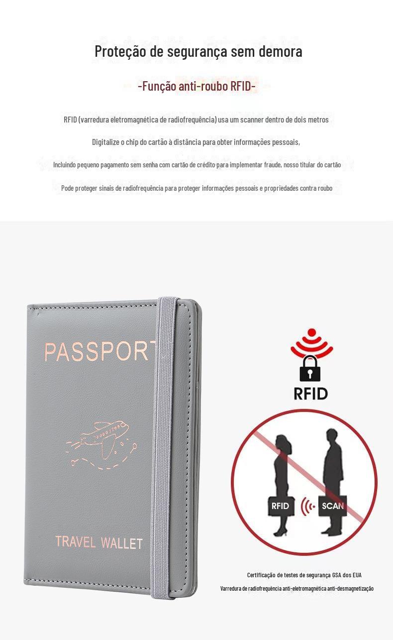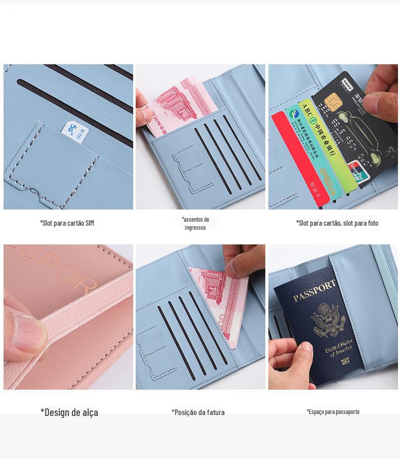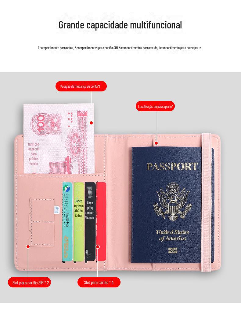 Bolsa Popular Transfronteiriça para Passaporte RFID Alça de Couro PU Multifuncional Bolsa para Documentos e Cartões SIM Porta-Passaporte Capa Protetora