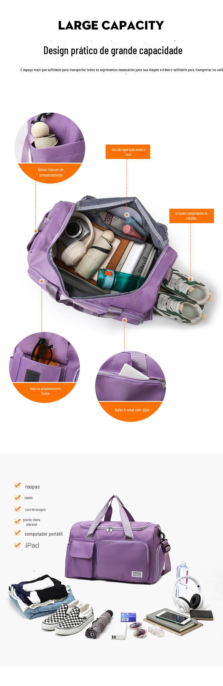 Bolsa de viagem de grande capacidade à prova d'água para estudantes Bagagem de armazenamento de viagem de negócios de curta distância Bolsa de separação úmida e seca natação Yoga Fitness Bolsa