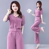Terno de cor sólida simples das mulheres verão novo senso de design elegante redução da idade reta barriga cobrindo calças conjunto de duas peças