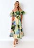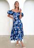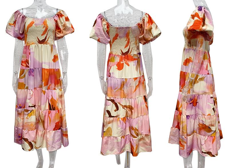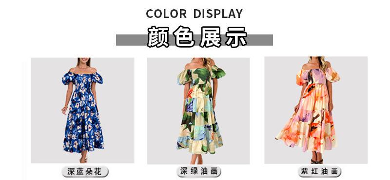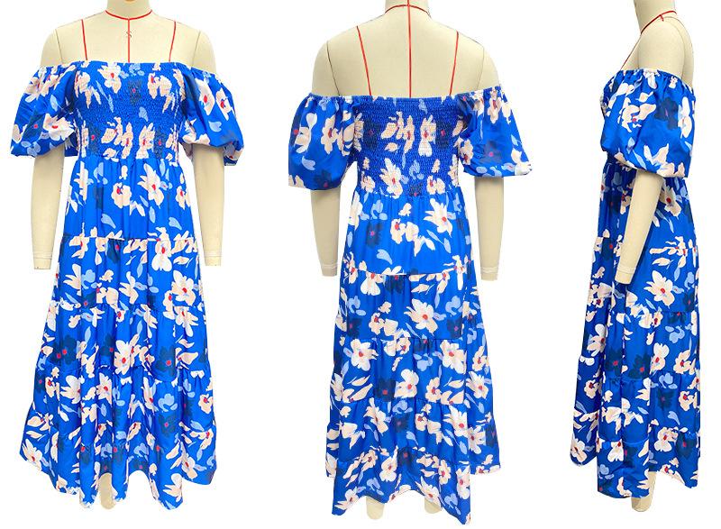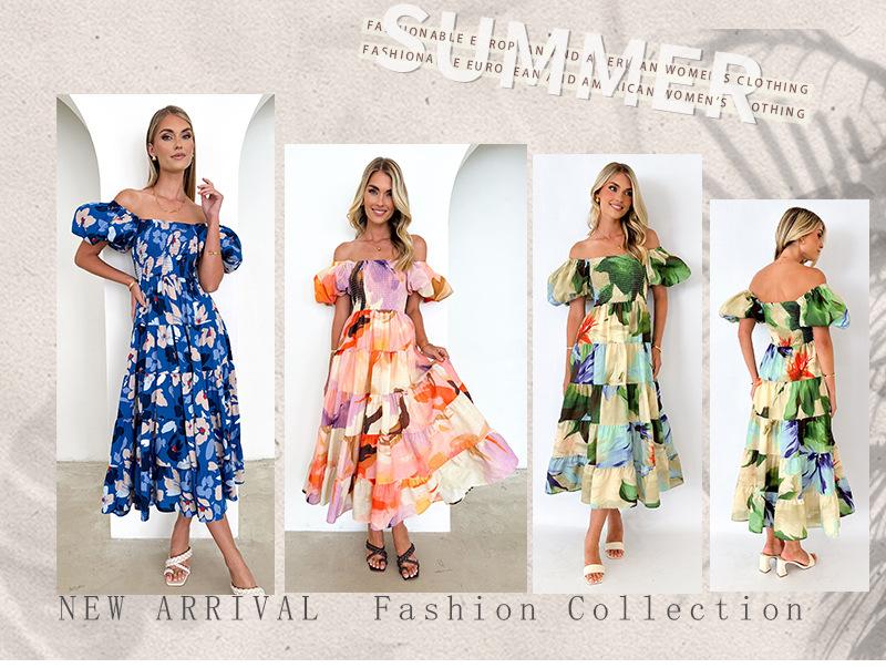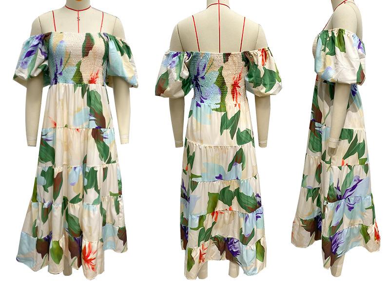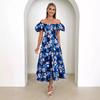 2026 Verão Transfronteiriço Europeu e Americano Novo Estilo Elegante Estampado Ombro a Ombro Estilo Férias Vestido Sexy Solto para Mulheres