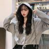 Casaco estilo preguiçoso com capuz roupas femininas de outono estilo coreano solto exterior vestir suéter de estudante curto cor sólida top cardigan feminino
