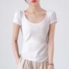 Moda Verão 2025 Nova Camiseta Justa Feminina Slim Manga Curta Elástica Básica para Usar por Baixo com Top Curto