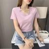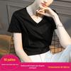 | | | | Camiseta de algodão mercerizado de seda amoreira de alta contagem feminina solta em torno do pescoço fino ajuste manga curta com decote em v branco topo feminino | | |