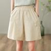 Foto Oficial Calça Curta Slim de Cintura Alta Casual Feminina Verão 2025 Shorts de Linho Soltos e Mais Fáceis de Combinar Algodão e Linho Calças de Perna Larga