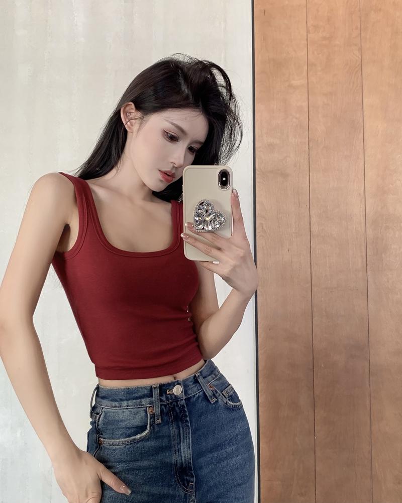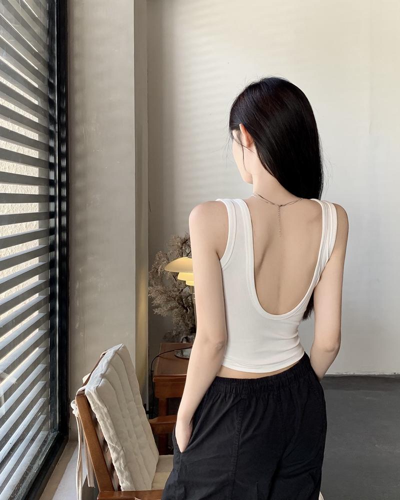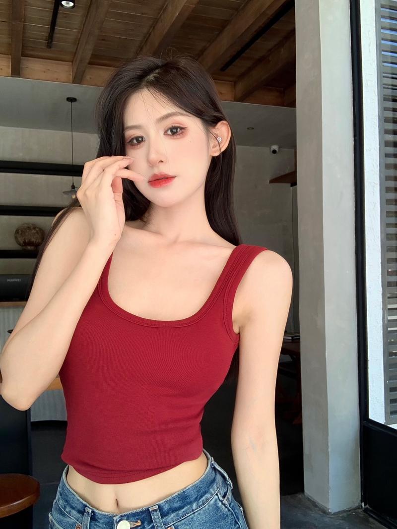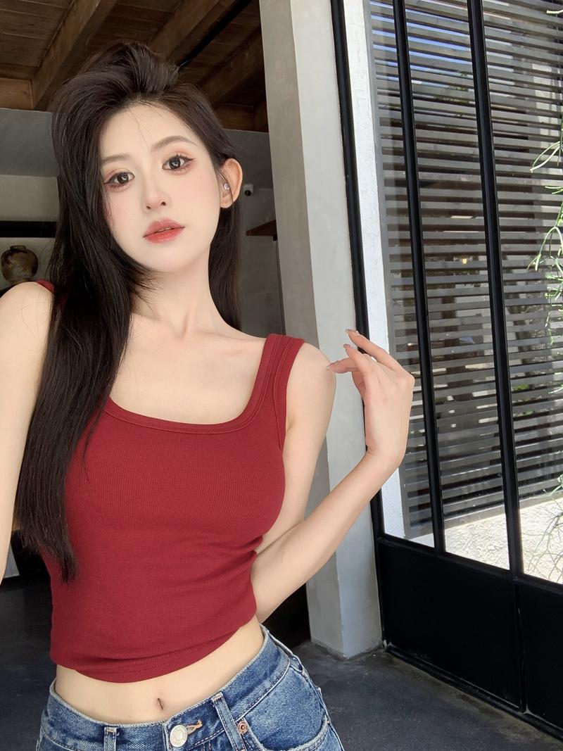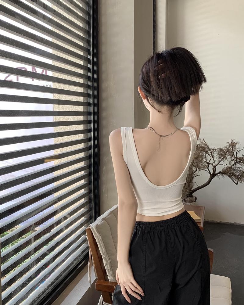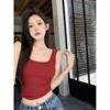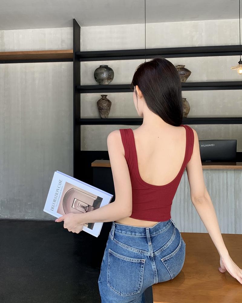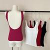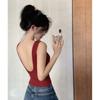 Camisola pequena de uma peça vermelha estilo americano com bojo, roupa interna e externa de verão para mulheres, top sem mangas para meninas, roupa íntima de beleza nas costas
