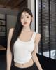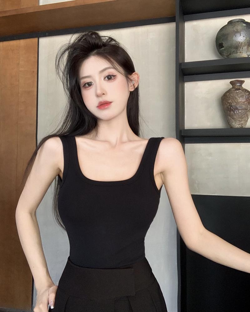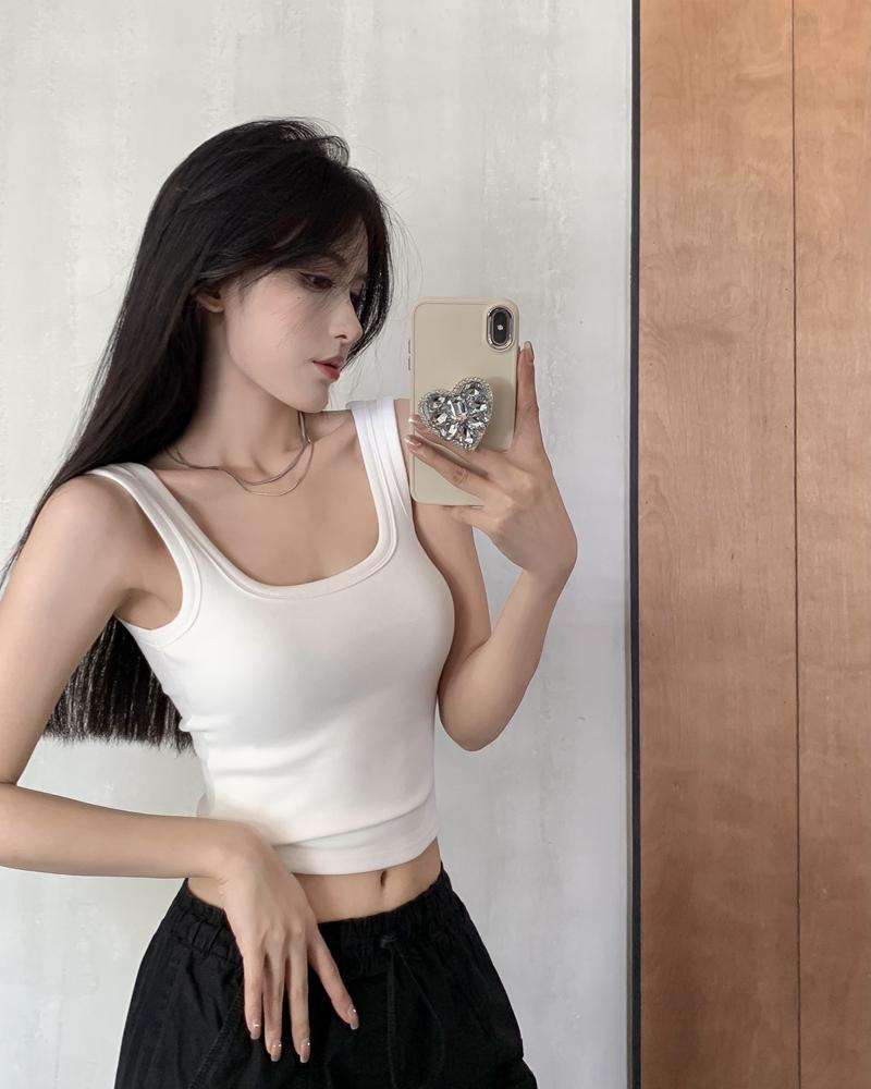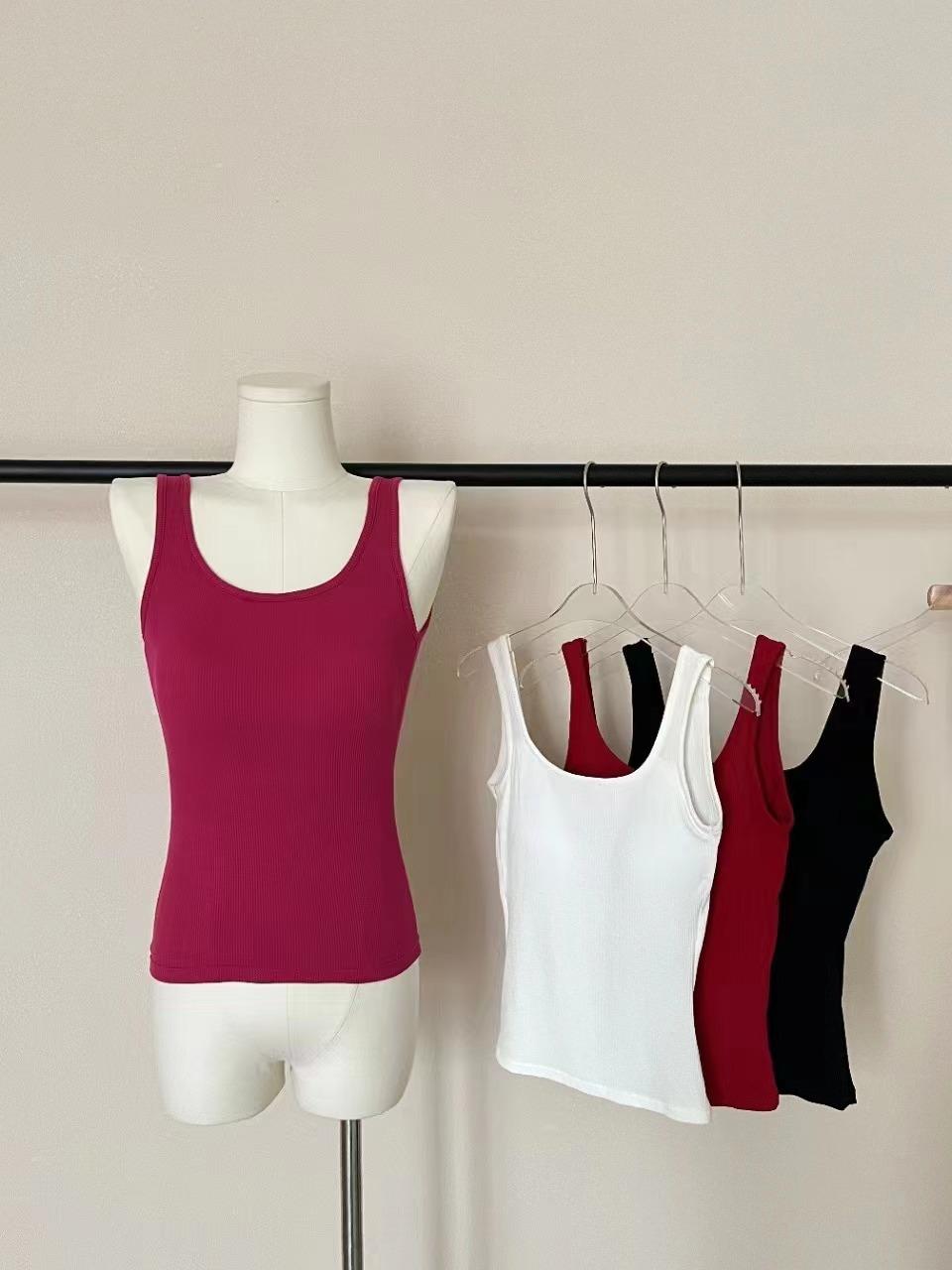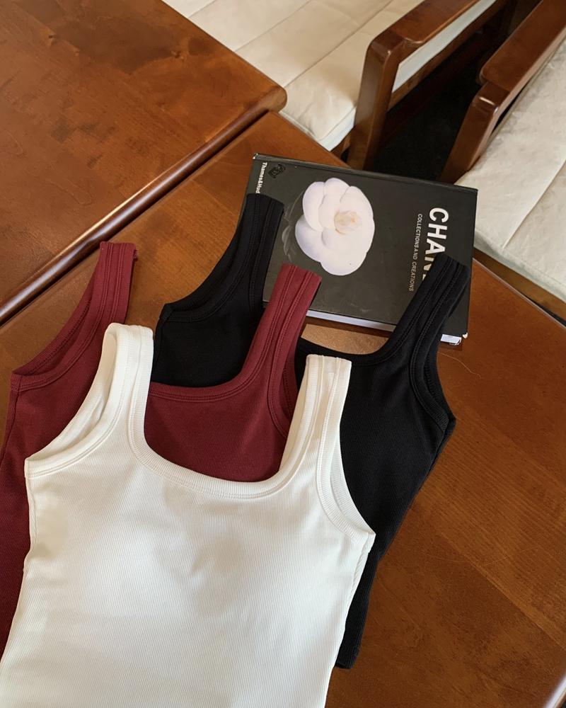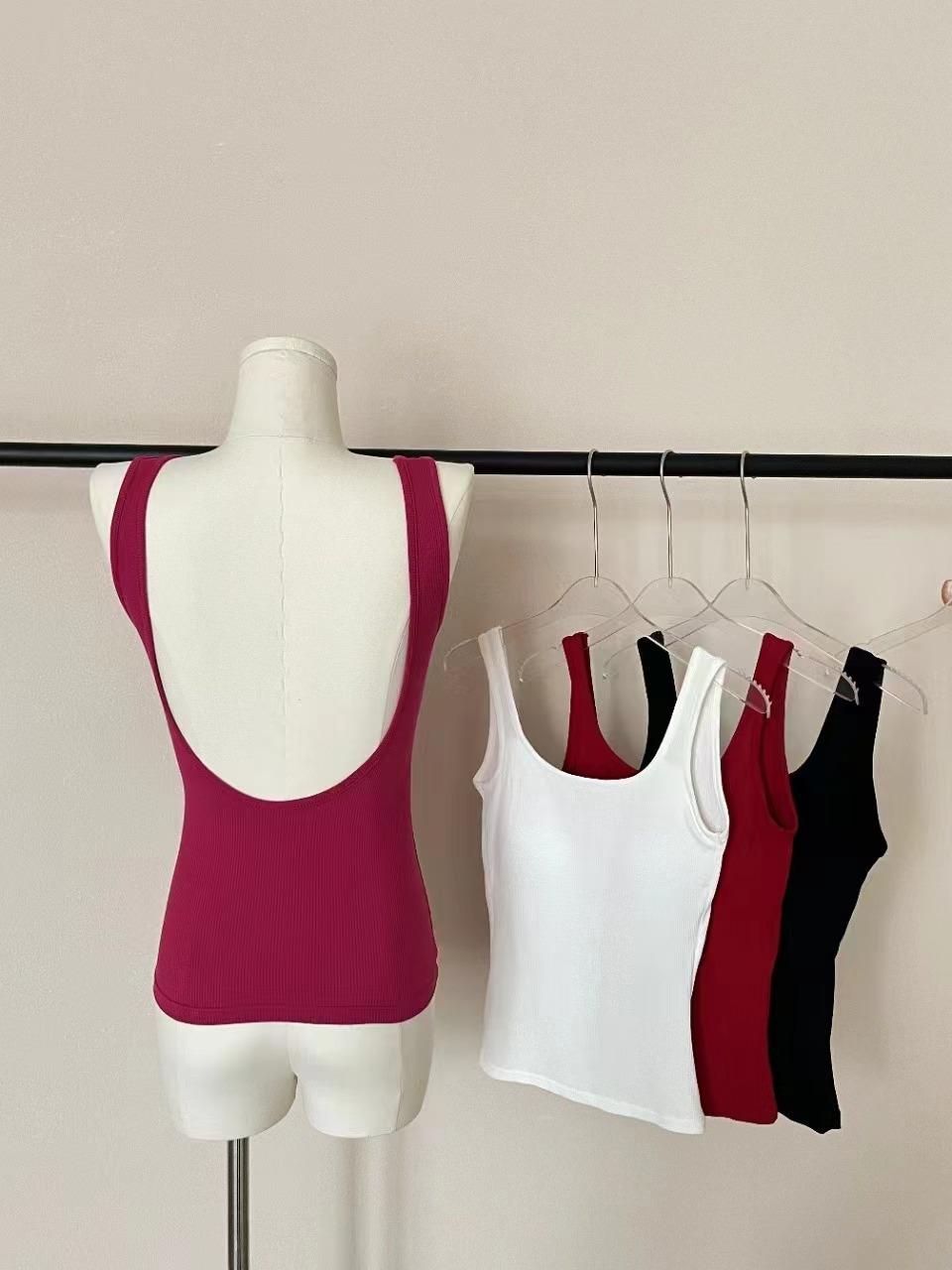 Camisola pequena de uma peça vermelha estilo americano com bojo, roupa interna e externa de verão para mulheres, top sem mangas para meninas, roupa íntima de beleza nas costas