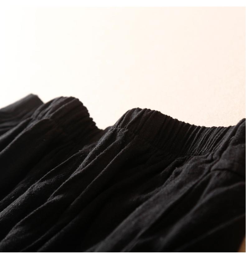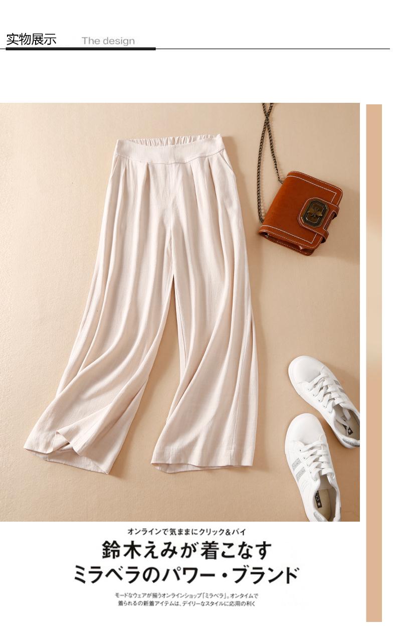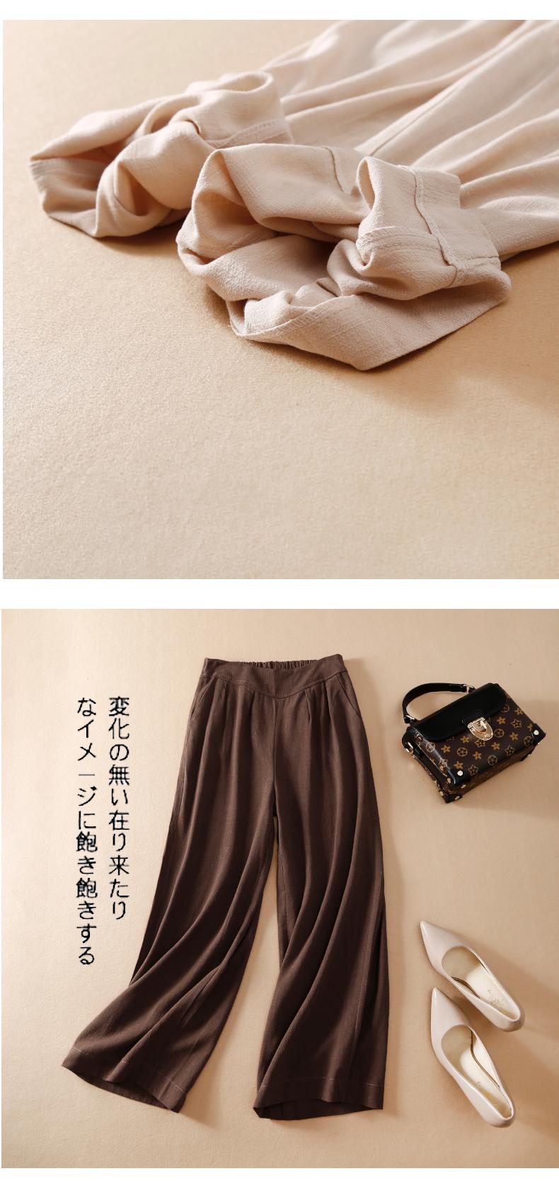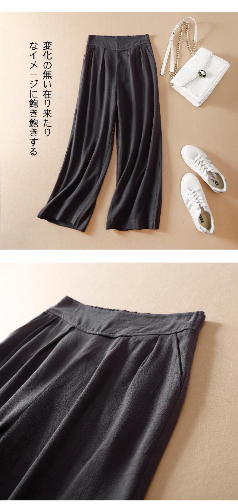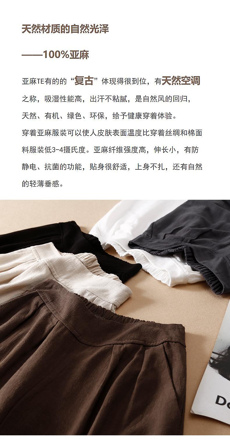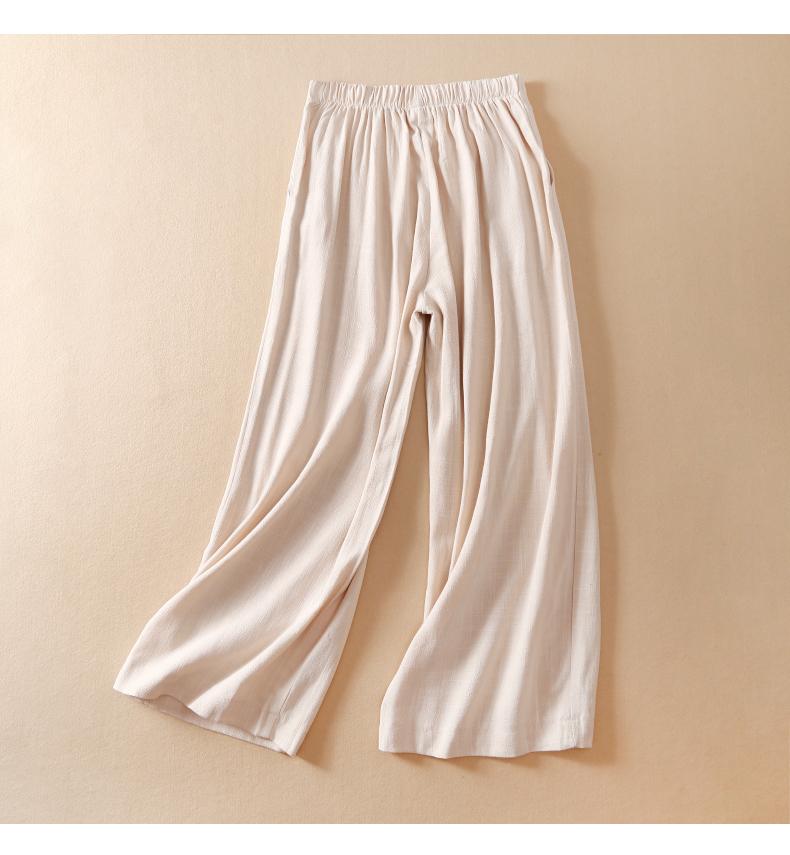 Calças de Linho Cor Sólida 2024 Femininas Primavera, Verão e Outono Soltas Literárias Algodão e Linho Calças de Perna Larga Calças Casuais Retrô Calças Nove Pontos