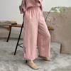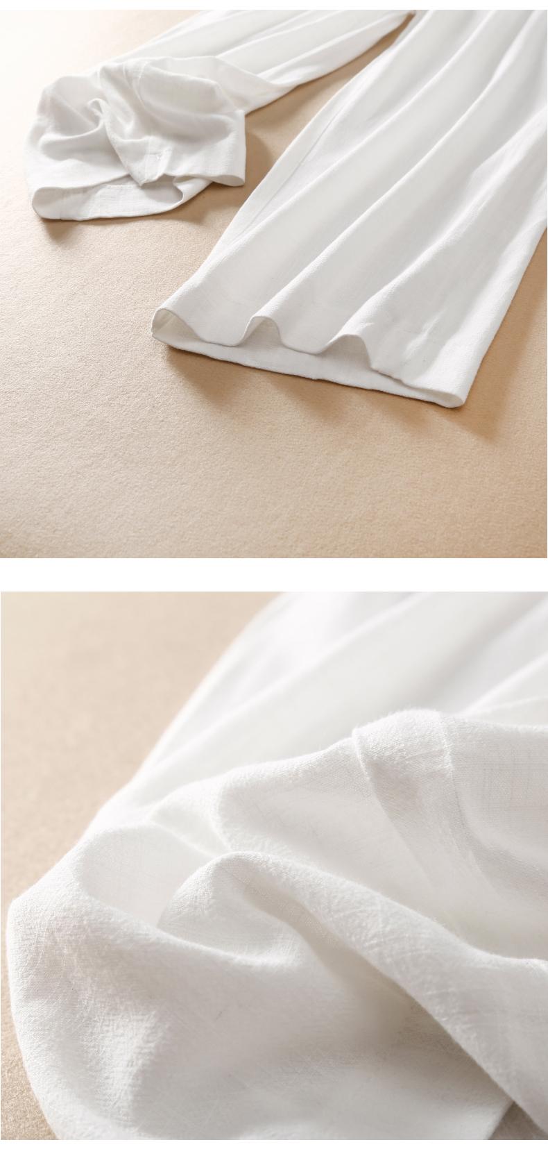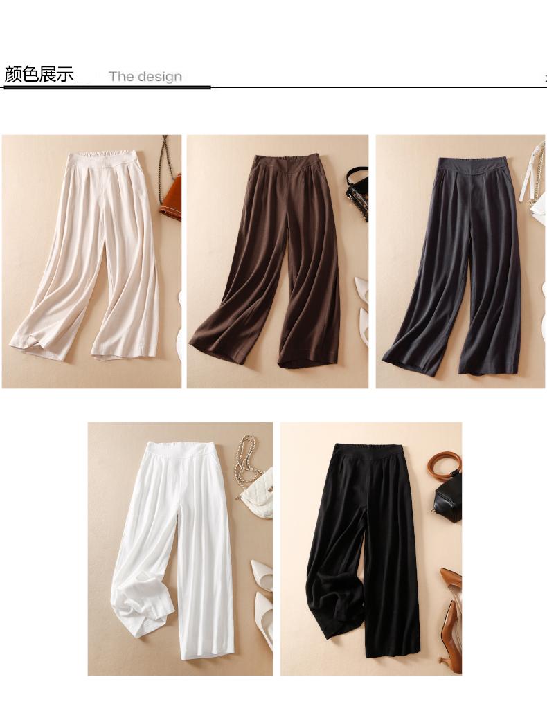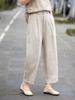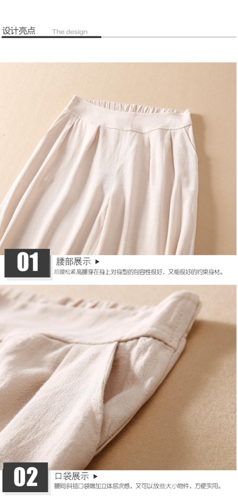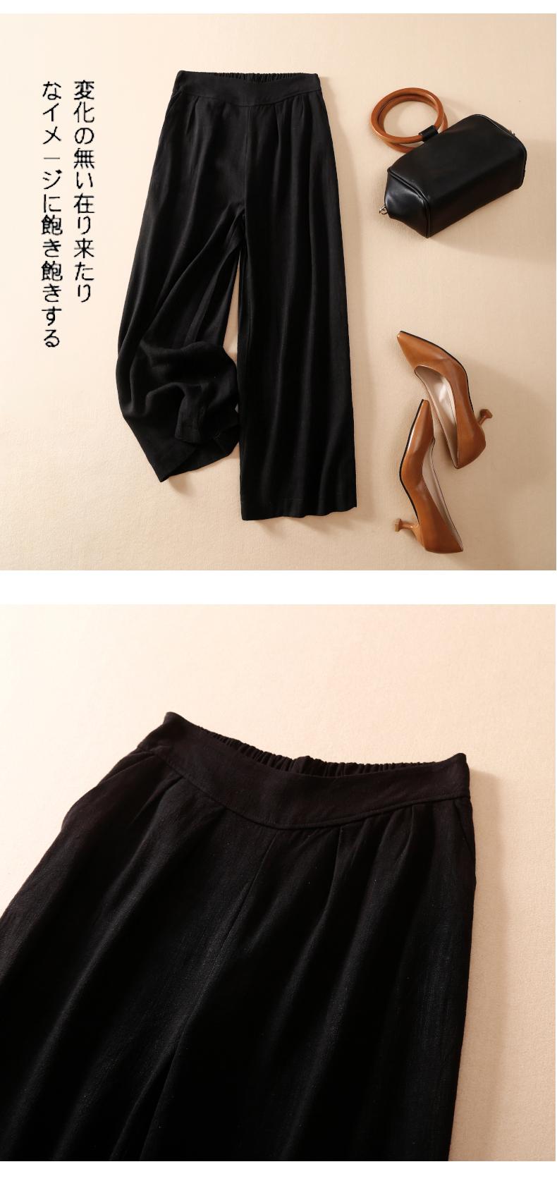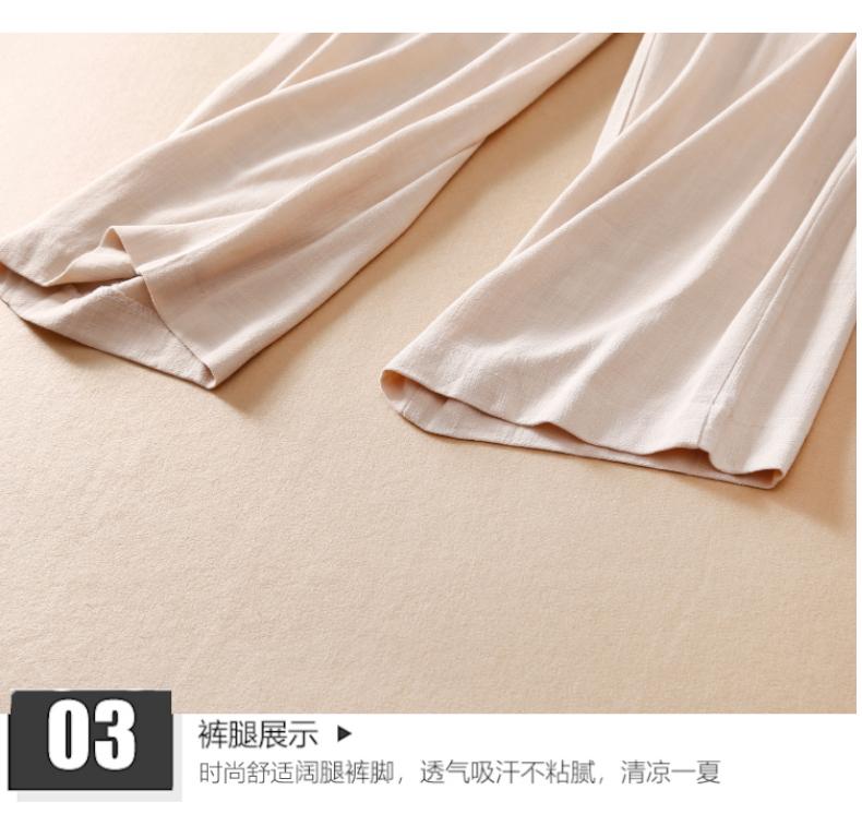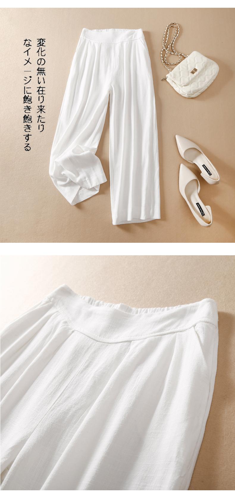 Calças de Linho Cor Sólida 2024 Femininas Primavera, Verão e Outono Soltas Literárias Algodão e Linho Calças de Perna Larga Calças Casuais Retrô Calças Nove Pontos
