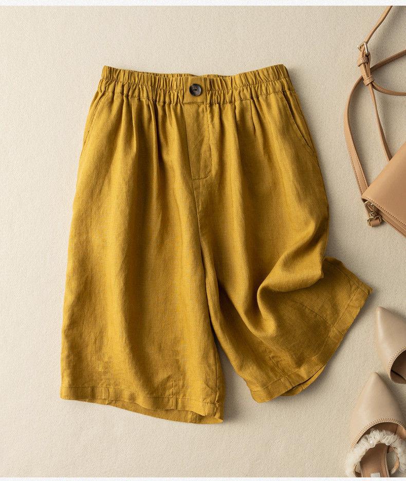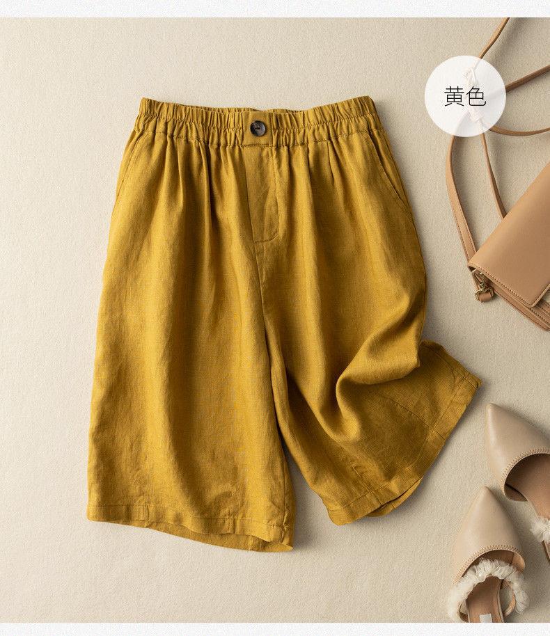 Compre Calças de Algodão e Linho Shorts Femininos Calças Três Quartos 2025 Verão Novo Estilo Literário Retrô Calças de Perna Larga Soltas Fashion Casuais no atacado no Joom.pro