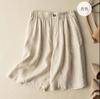 Calças de Algodão e Linho Shorts Femininos Calças Três Quartos 2025 Verão Novo Estilo Literário Retrô Calças de Perna Larga Soltas Fashion Casuais