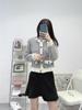 2024 Novo Outono e Inverno Cardigan Tricotado Jaqueta Feminina Estilo Francês Estampa Pied de Poule Gola Redonda Abotoamento Simples Manga Longa